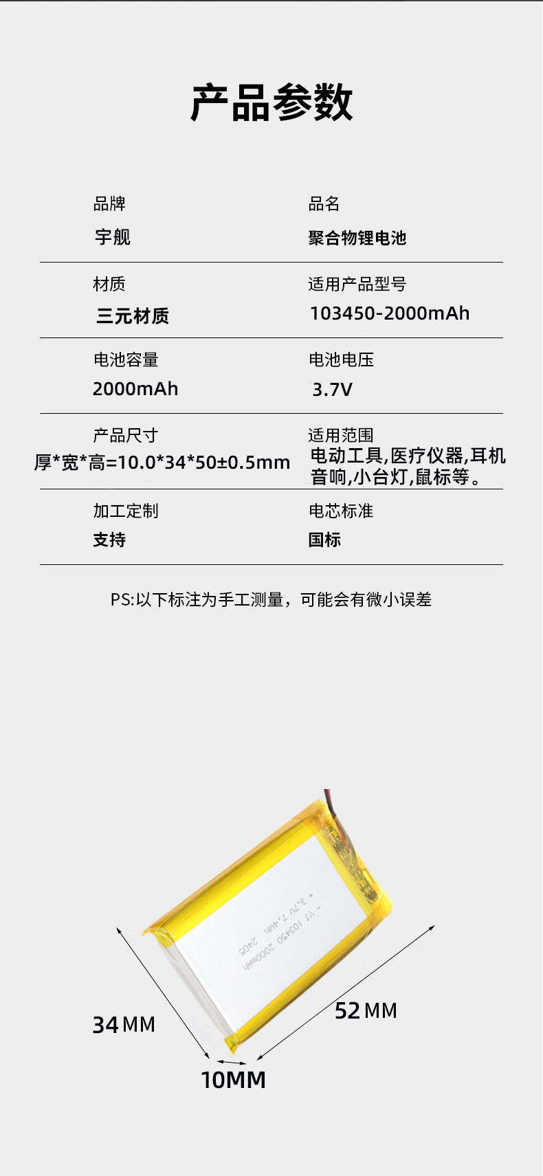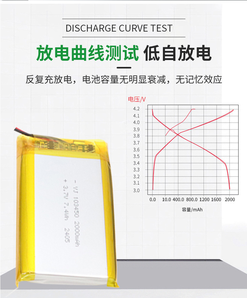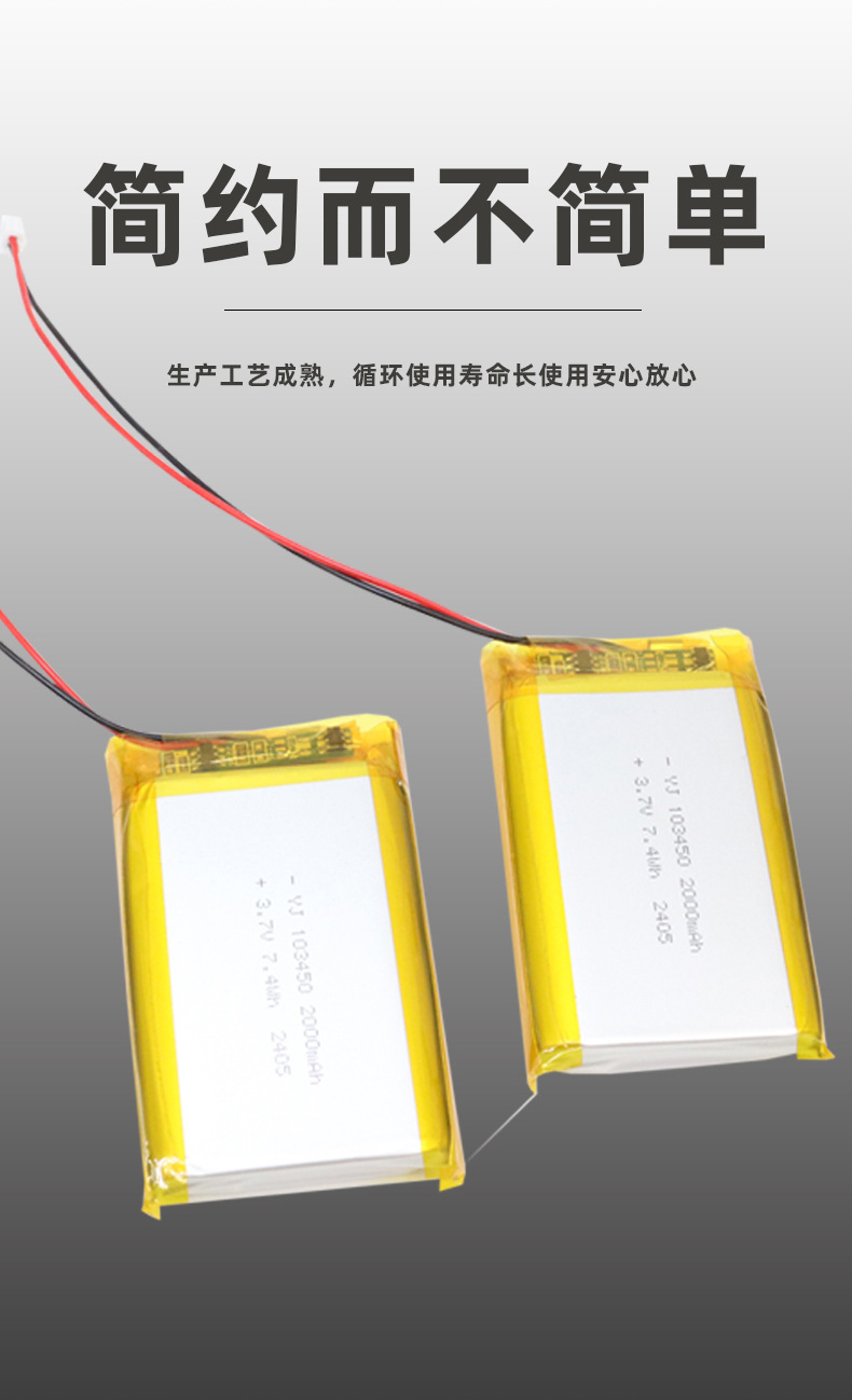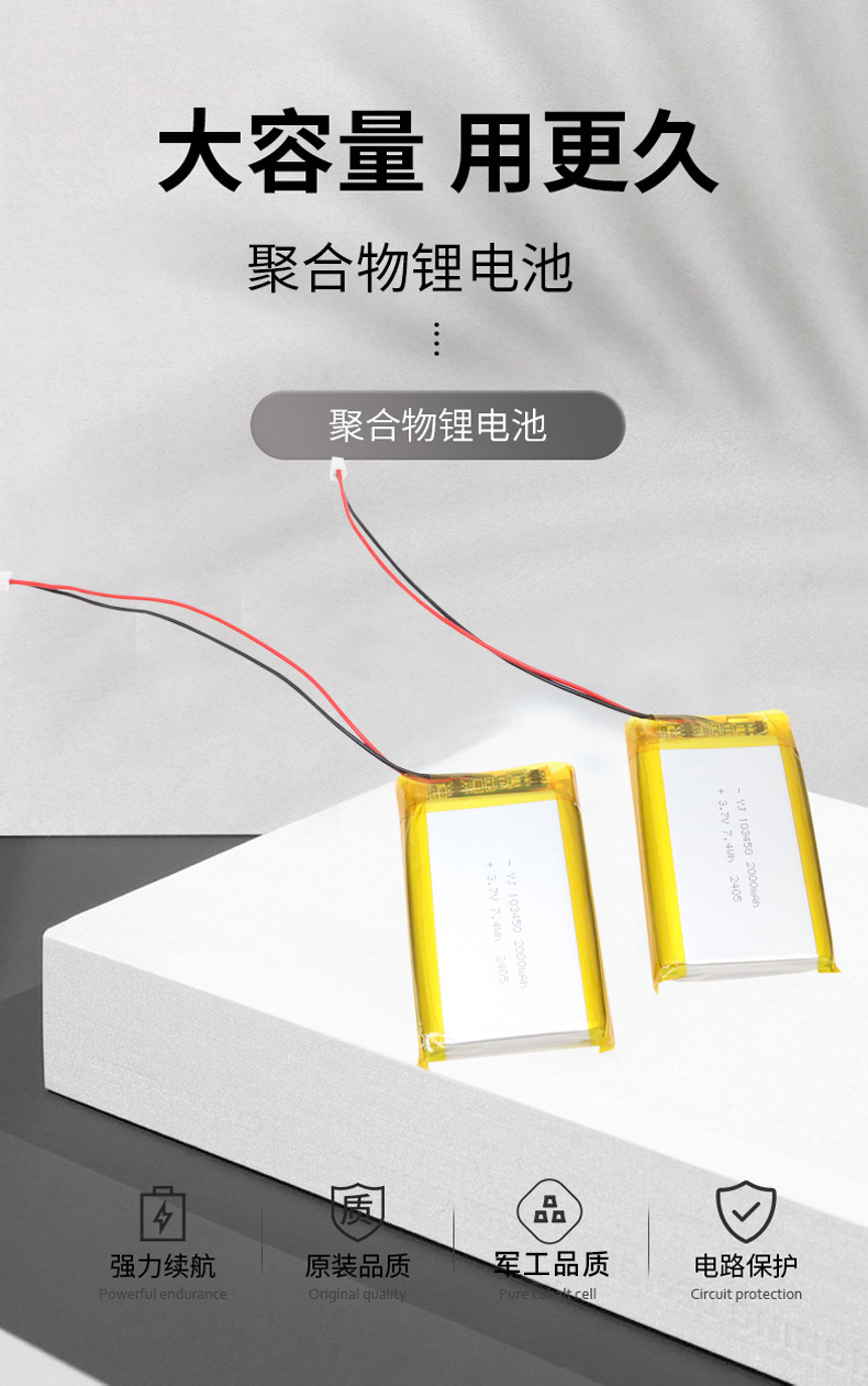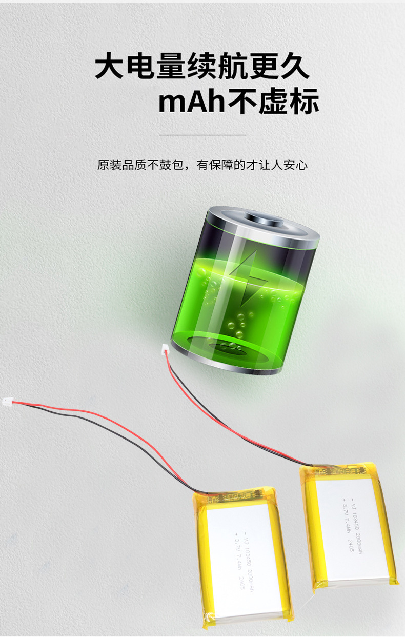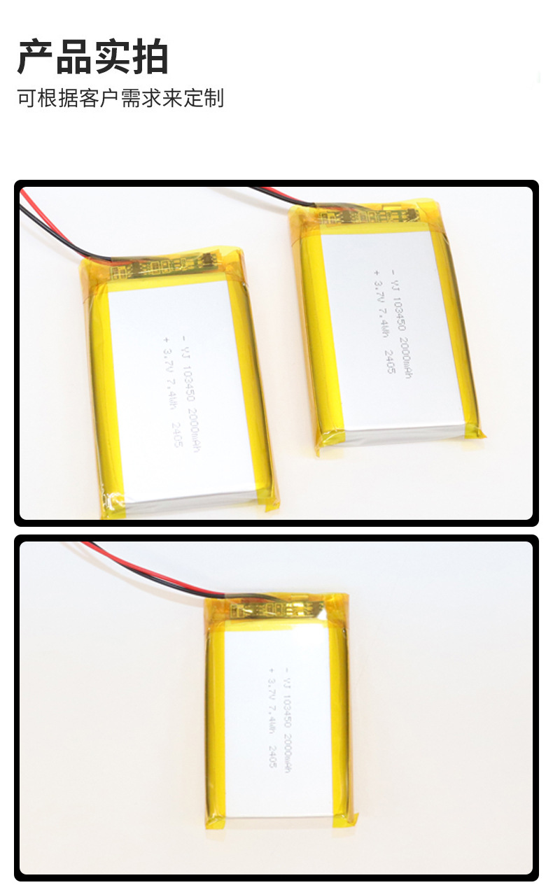 厂家直供103450锂电池3.7V高容量强光手电筒电池唱戏机音响电池