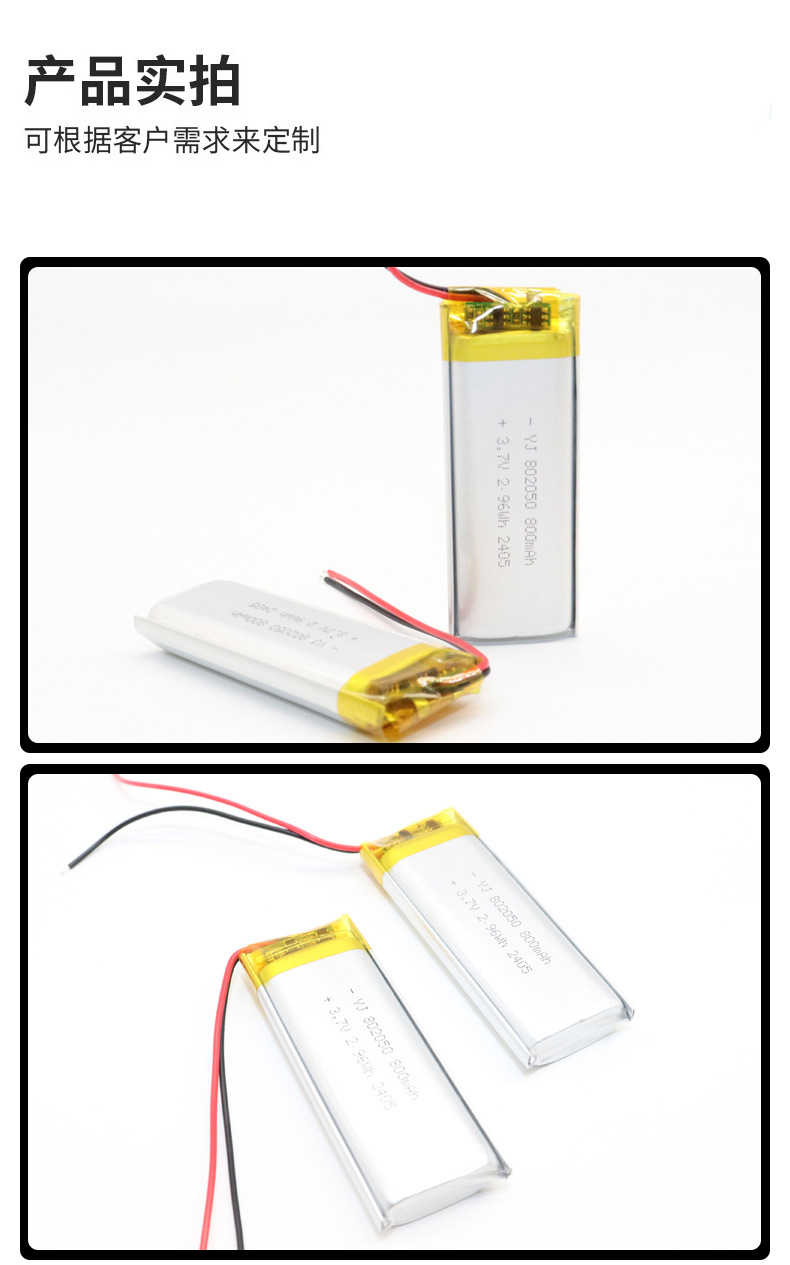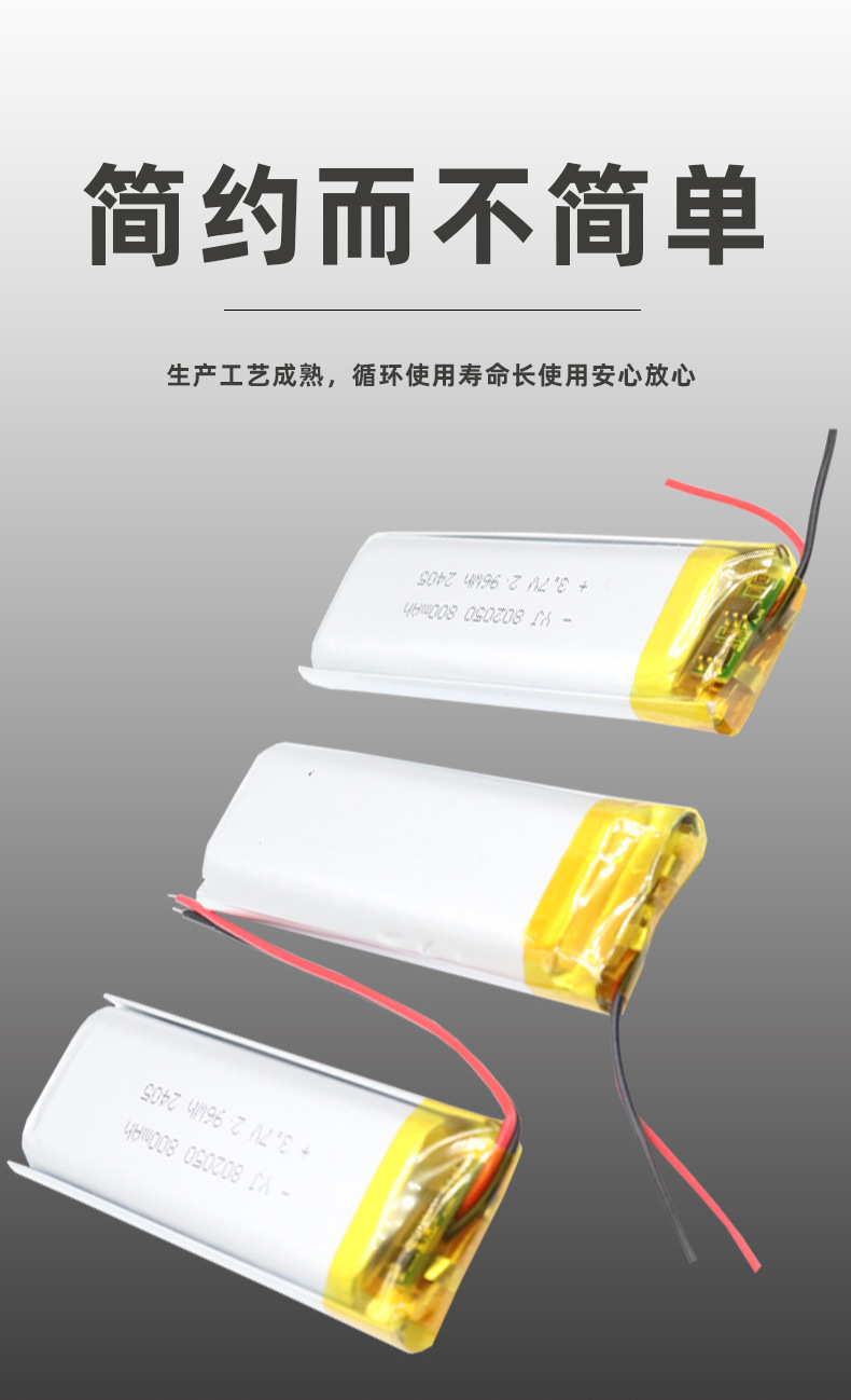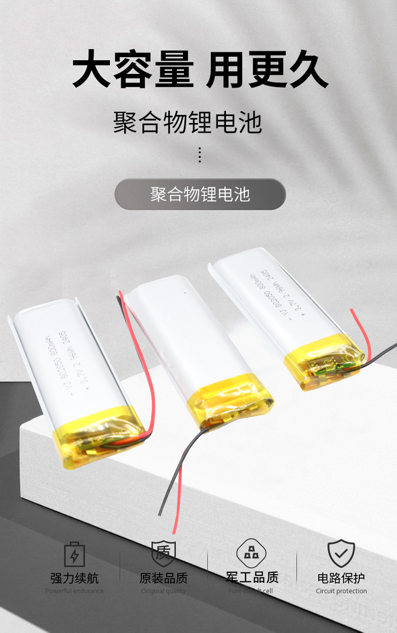 厂家直供802050锂电池3.7V台灯话筒强光手电筒电池唱戏机音响电池