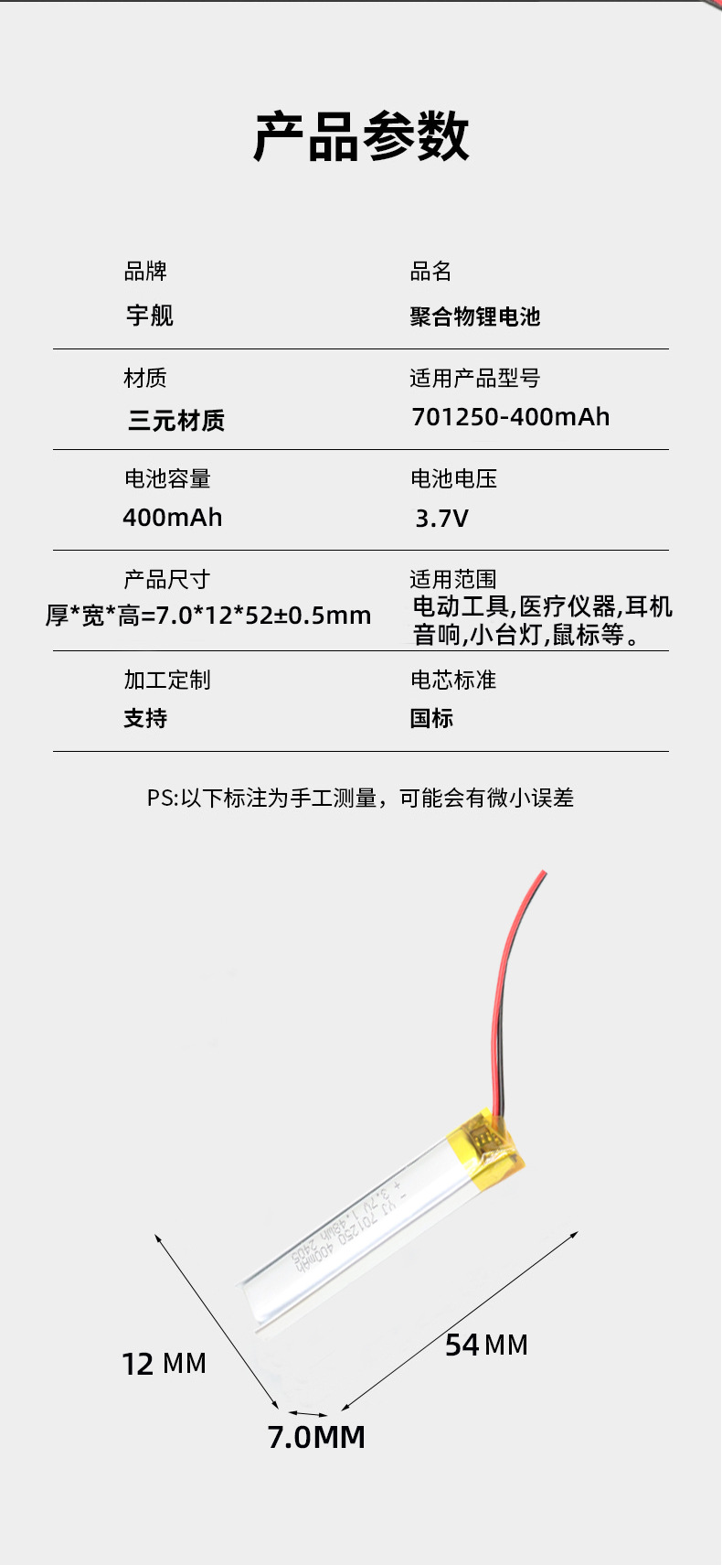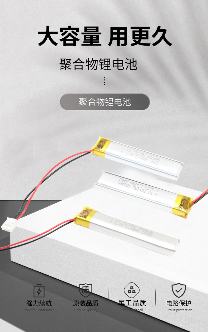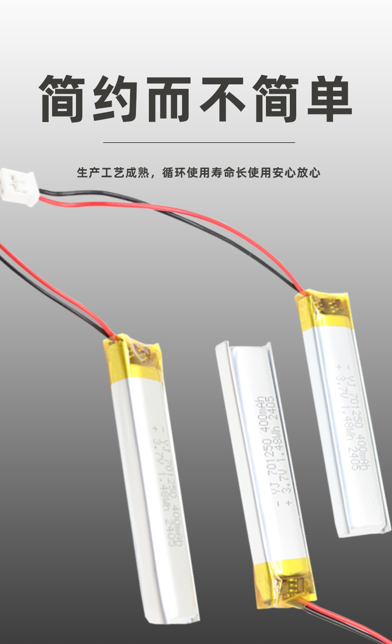 厂家直供701250锂电池3.7V高容量强光手电筒电池唱戏机音响电池
