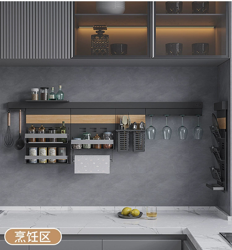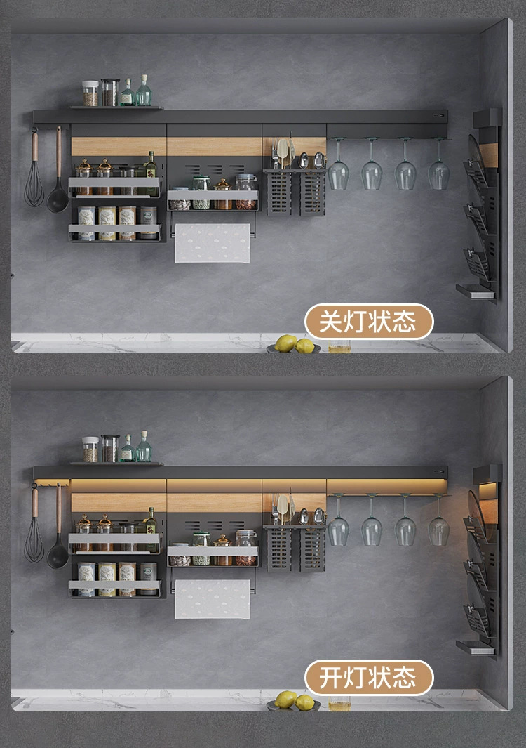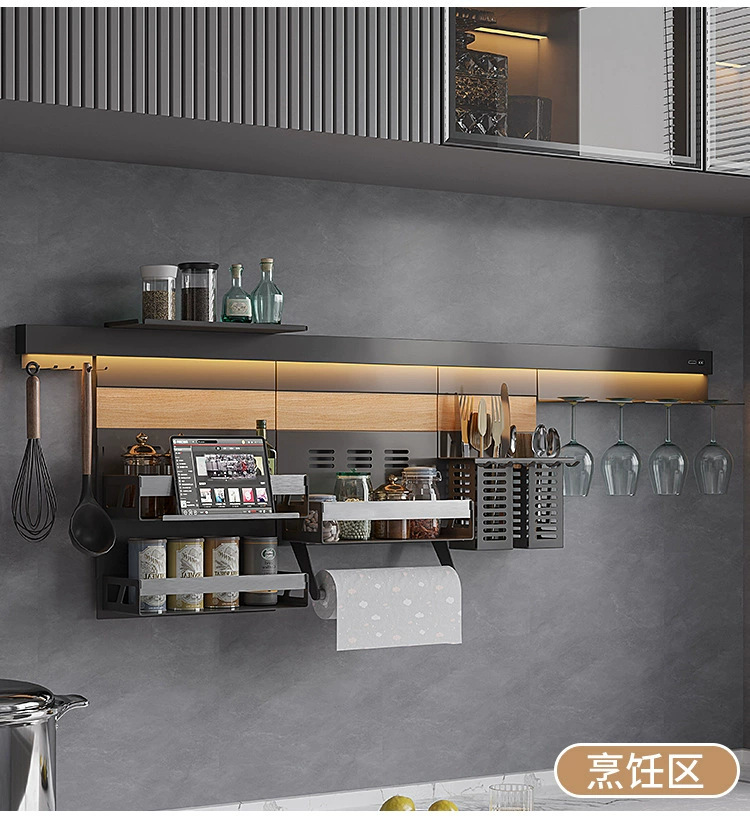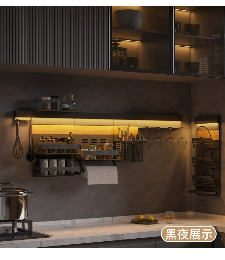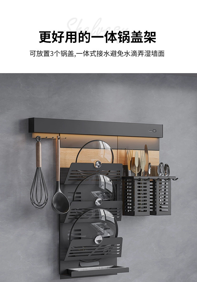 新款厨房置物托盘家用免打孔带灯调料架多功能锅盖架DIY刀架壁挂