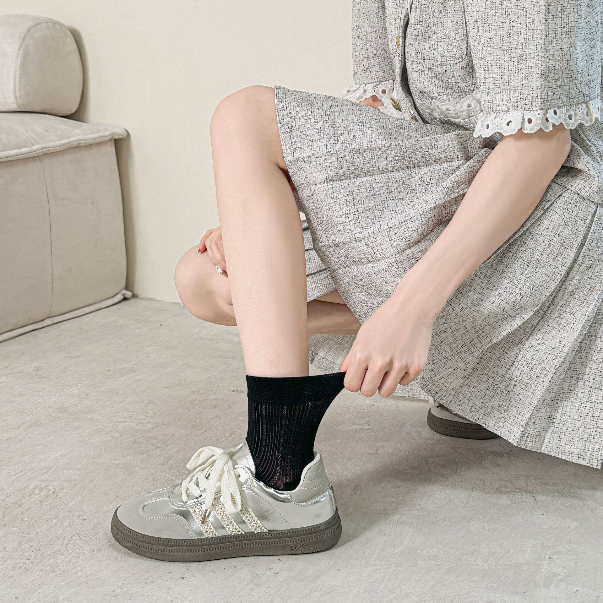 袜子女春夏薄款糖果色系短筒无骨纯色韩版百搭女士中筒袜独立包装