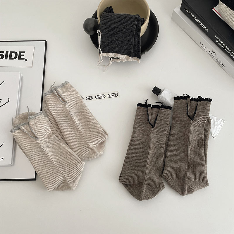 春秋新款软糯感后开叉堆堆袜子女小众设计师款JK个性精梳棉中筒袜