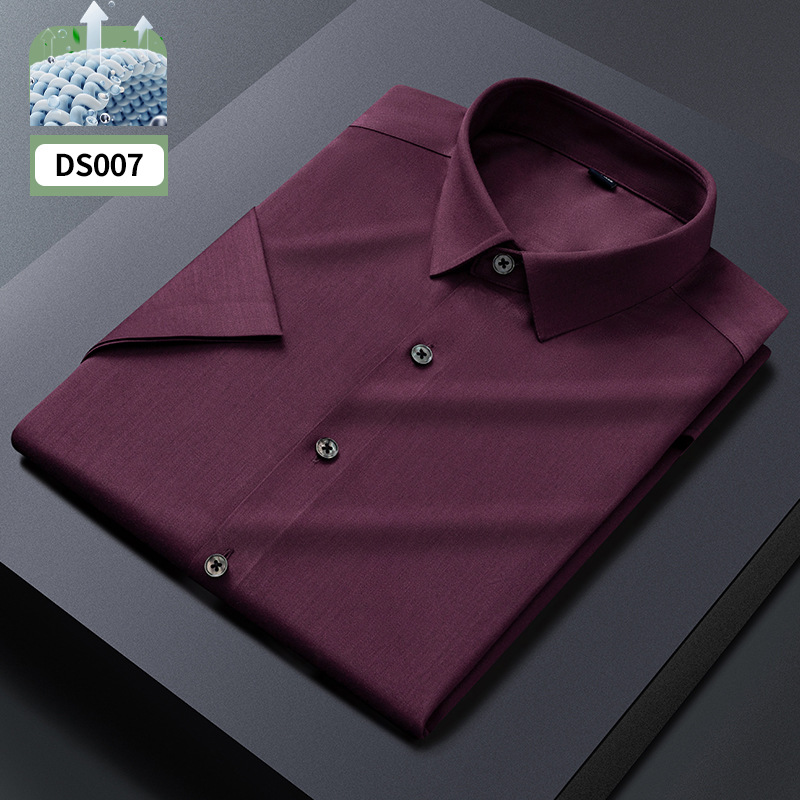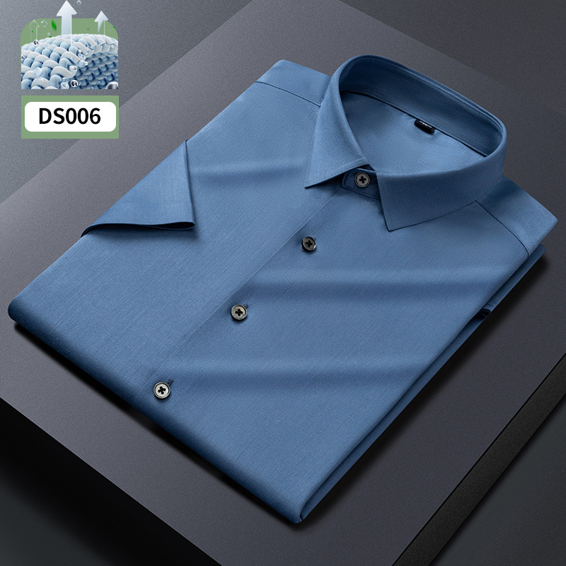 时尚翻领短袖男士衬衫休闲商务职业装夏秋季冰蚕丝半袖衫货源批发