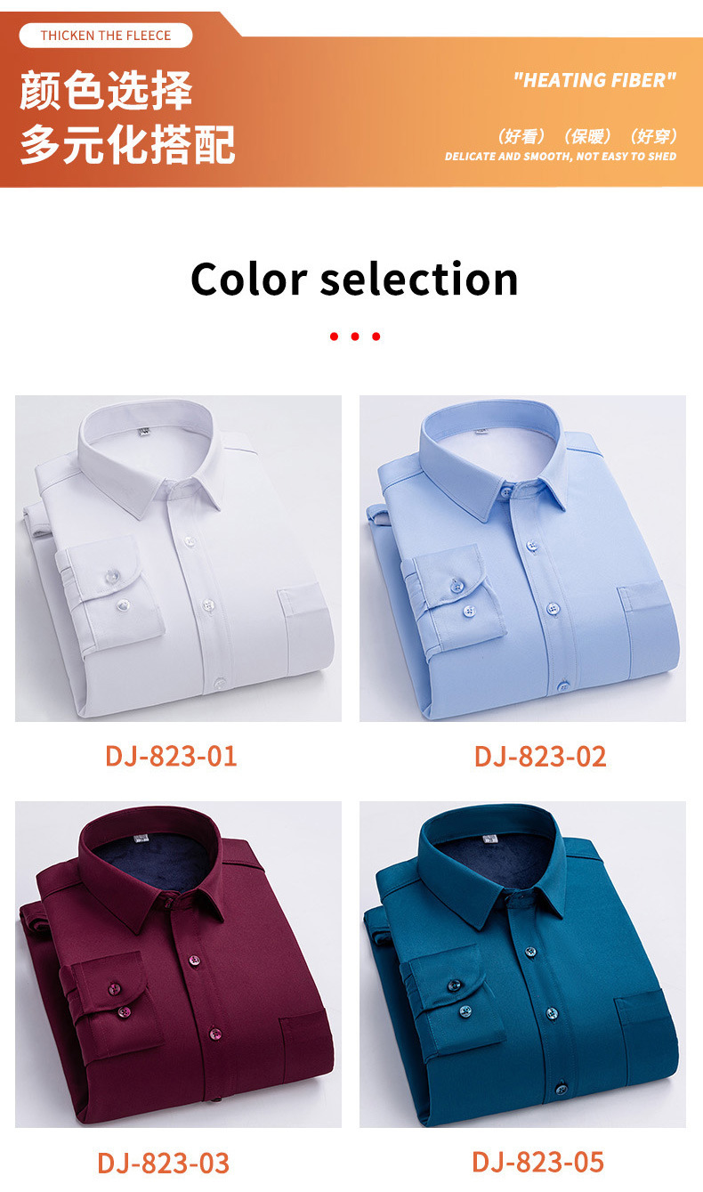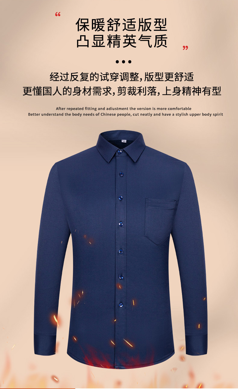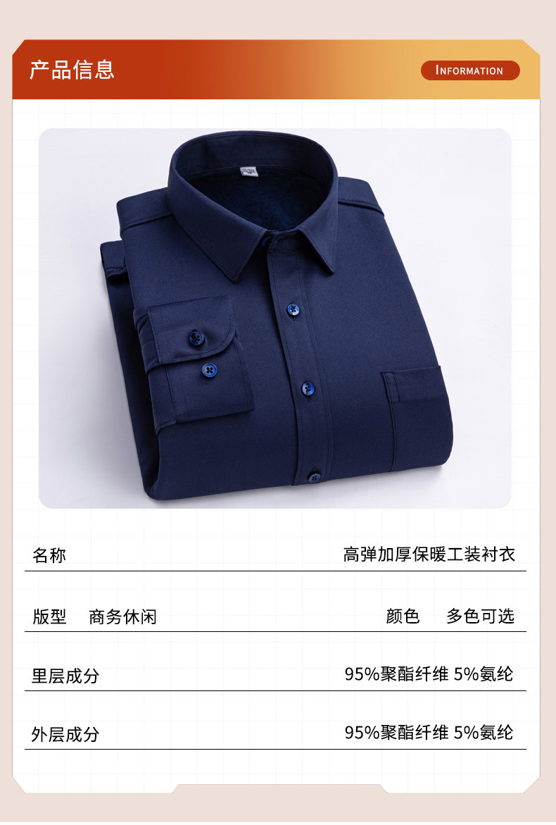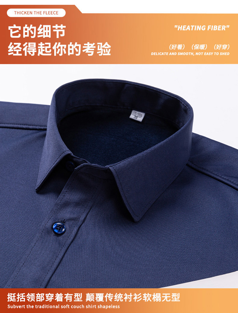 男士新款加绒弹力商务保暖衬衫男职业舒适一体绒纯色休闲加厚衬衣