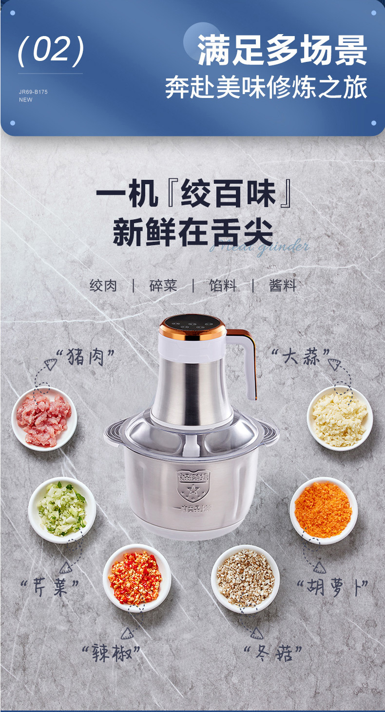 - 颜色:2L容量 4叶刀*1 无赠品肉器+饺子+刮刀