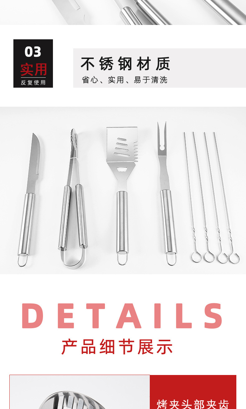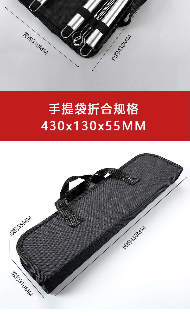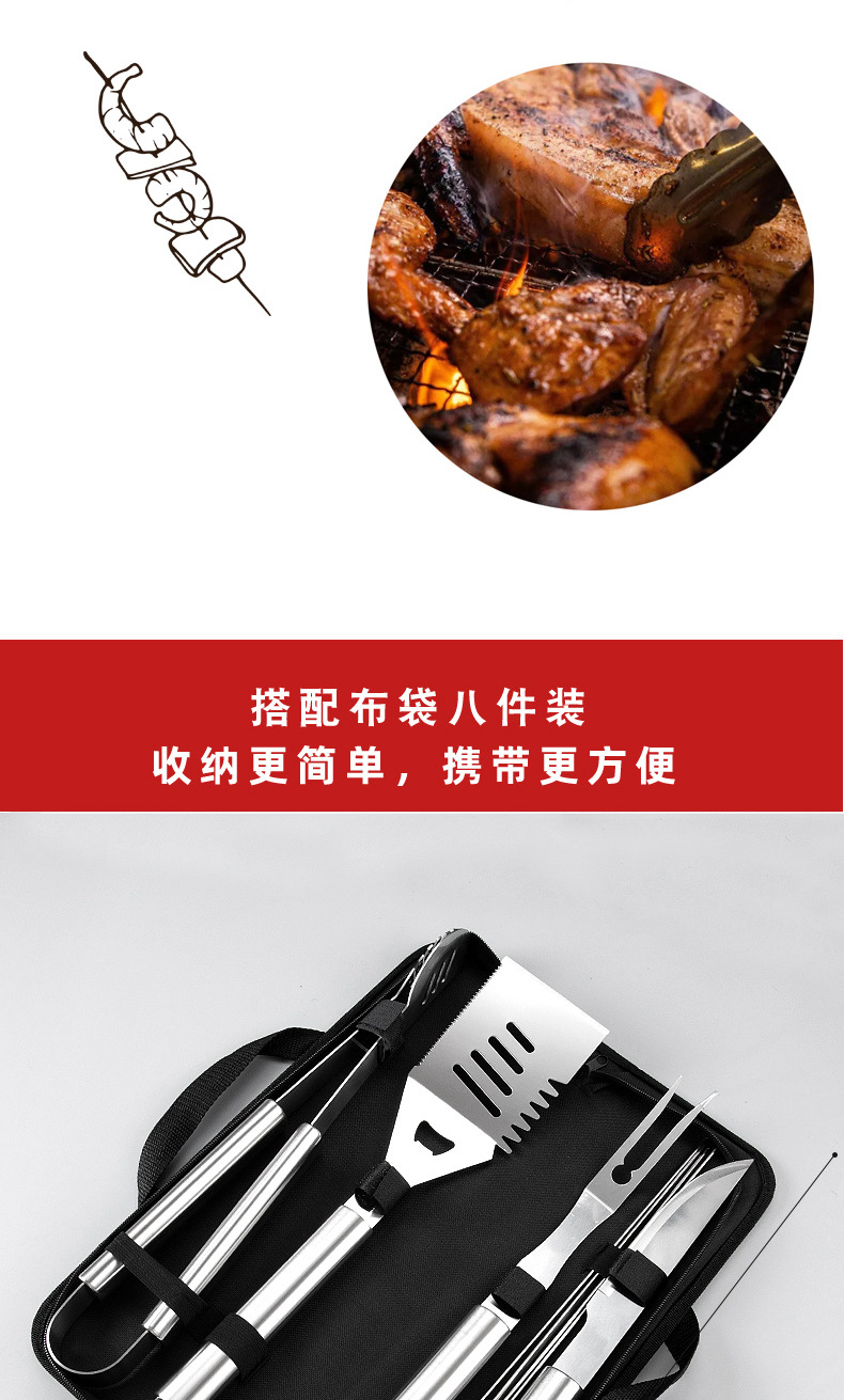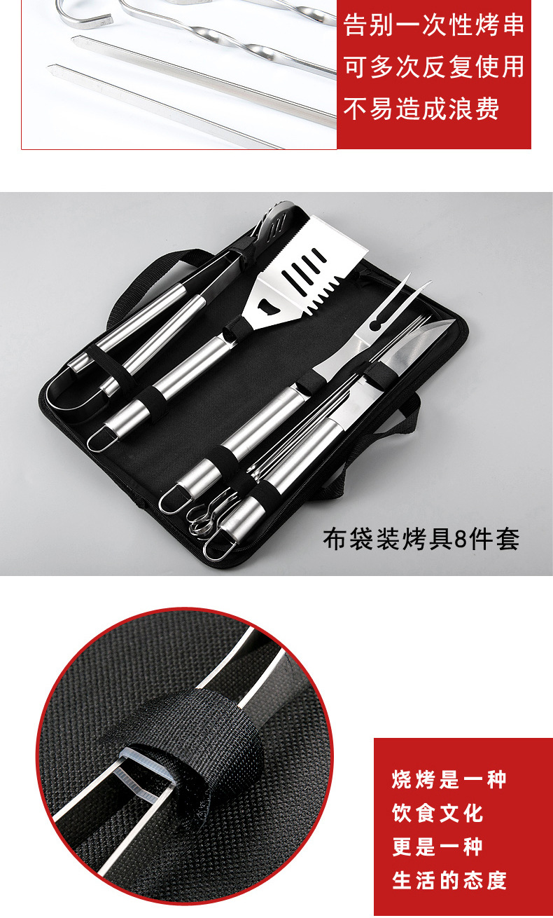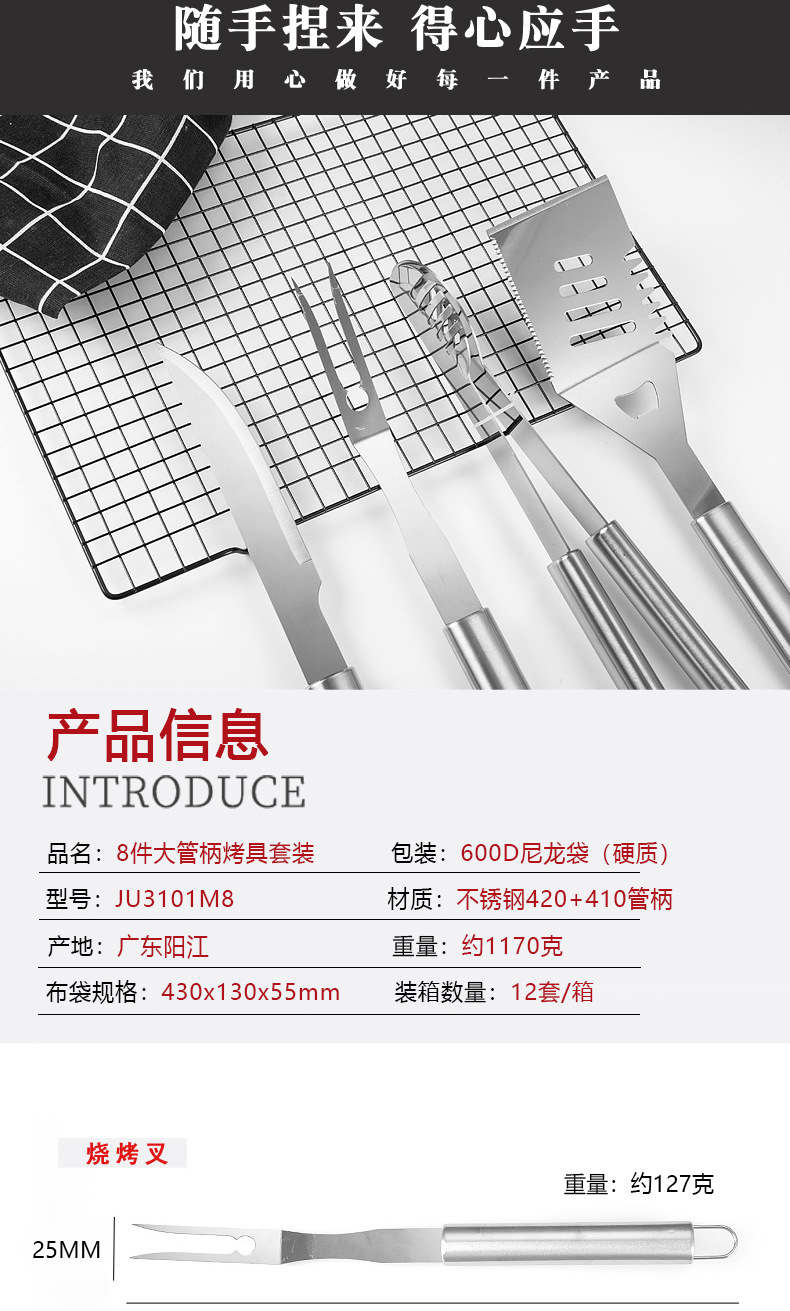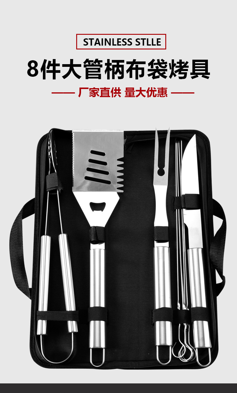 - 规格:8件大管柄烤具套装【尼龙袋装】
