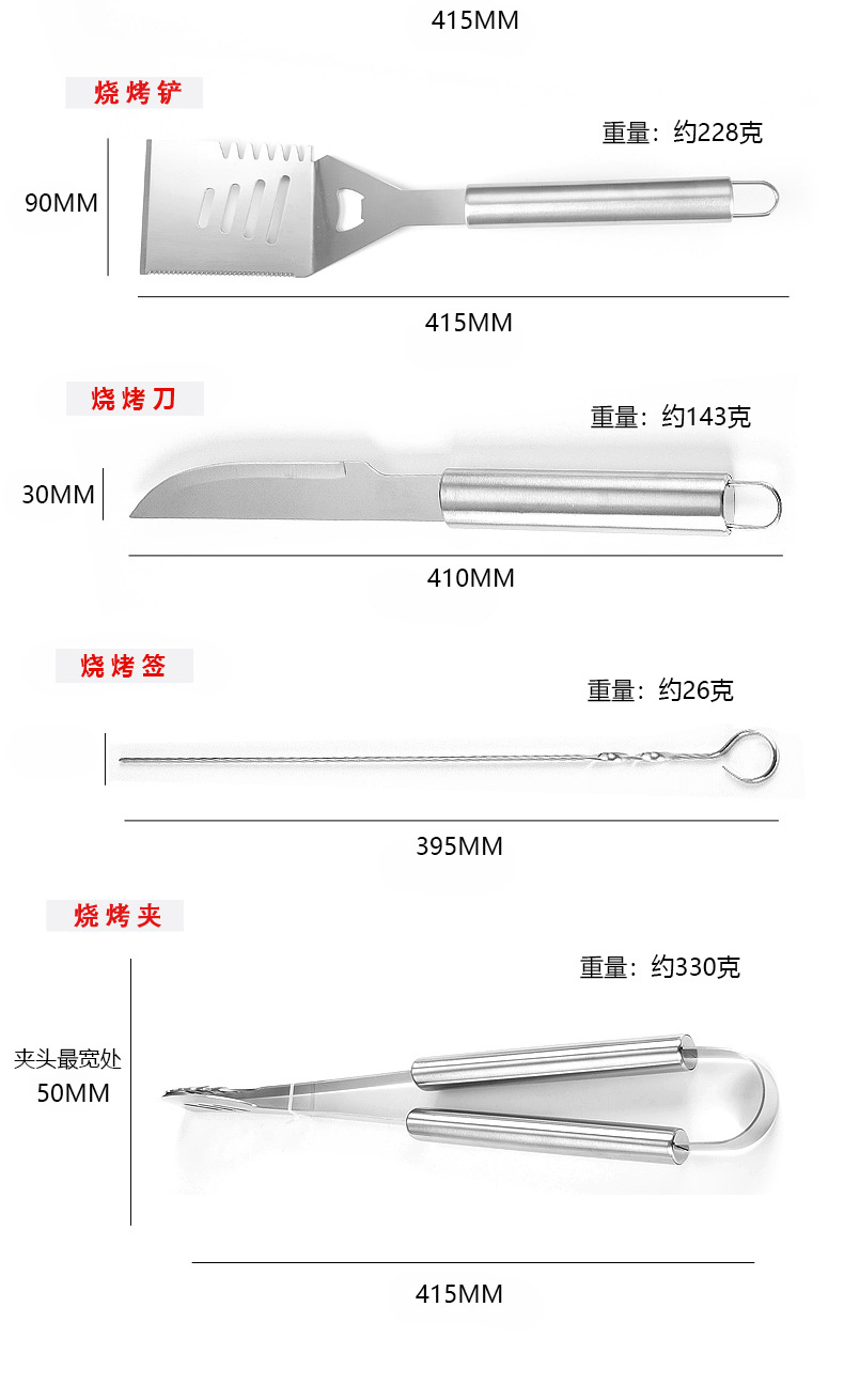 - 规格:4件大管柄烤具套装【尼龙袋装】