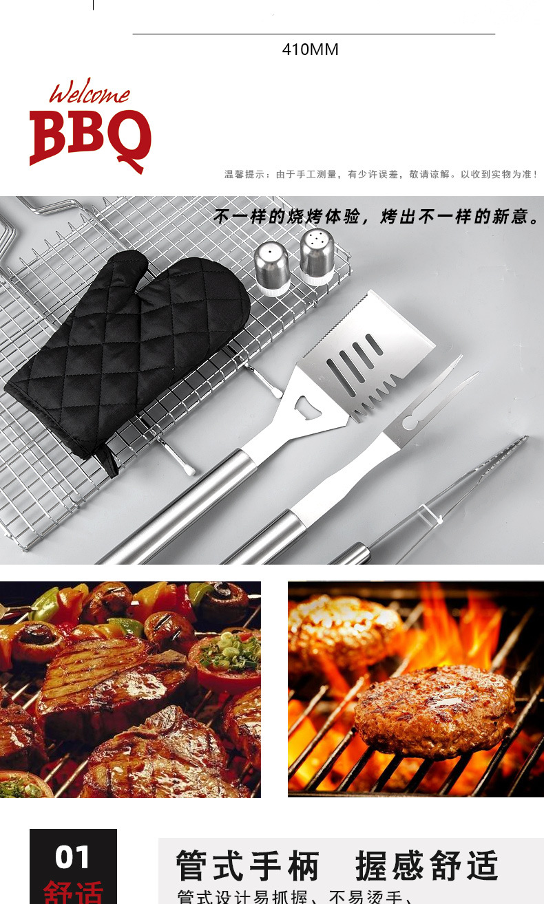 - 规格:3件大管柄烤具套装【尼龙袋装】