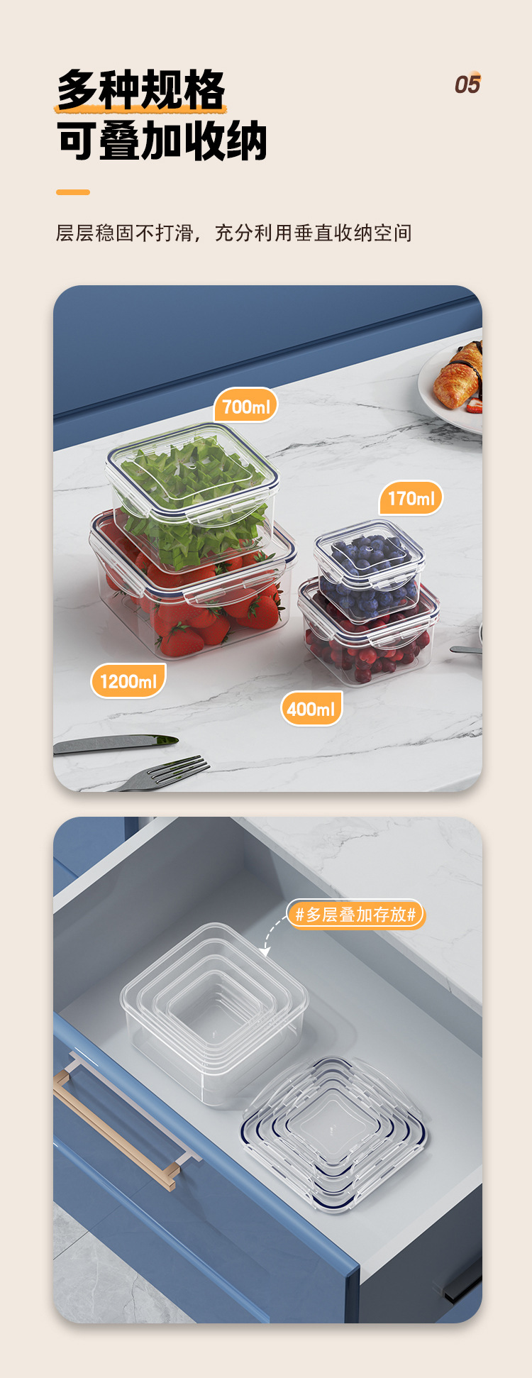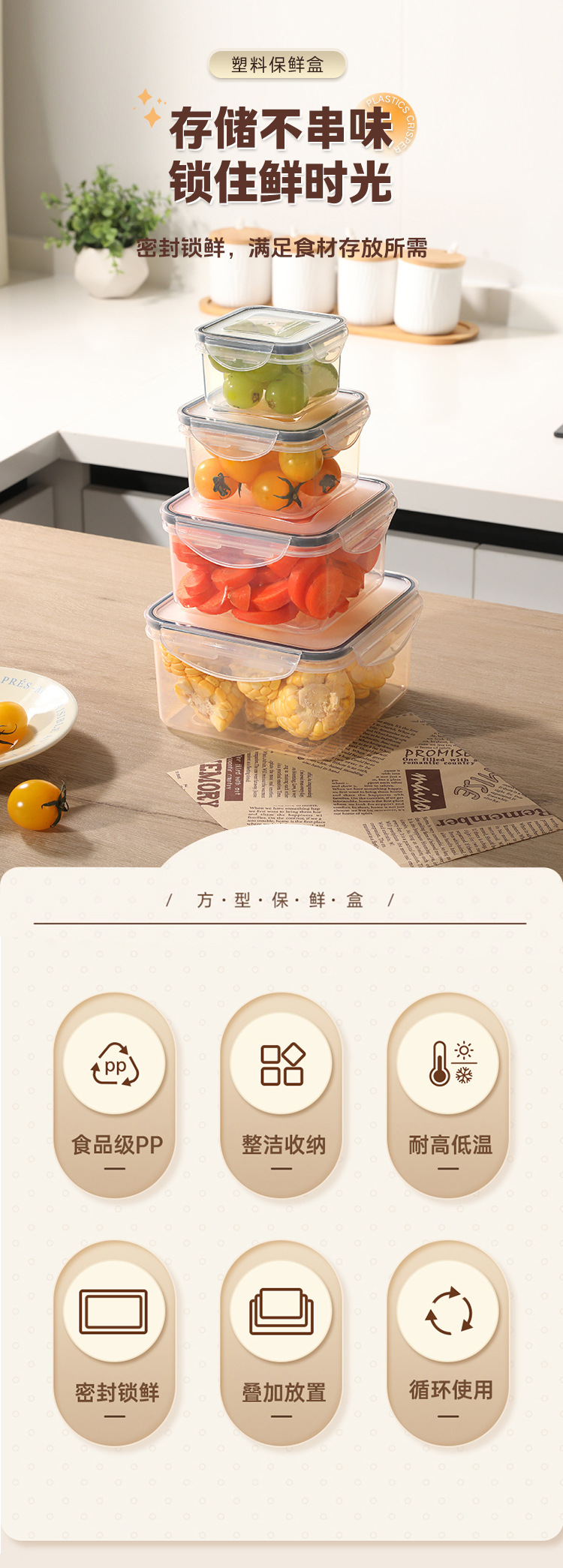 多规格组合便当饭盒可叠放耐高温水果蔬菜专用盒密封盒套装4件套