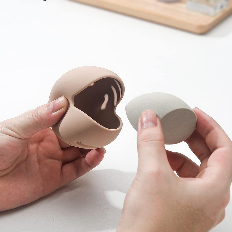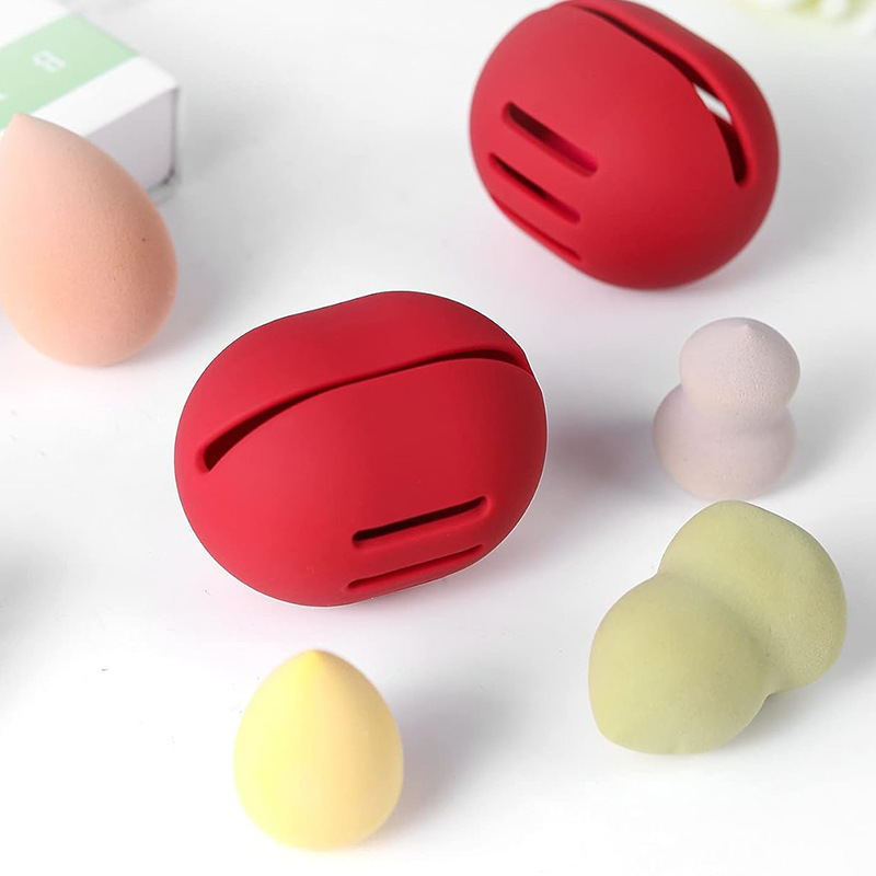 跨境美妆蛋收纳套化妆棉粉扑防尘双面透气便携椭圆胶囊硅胶保护套