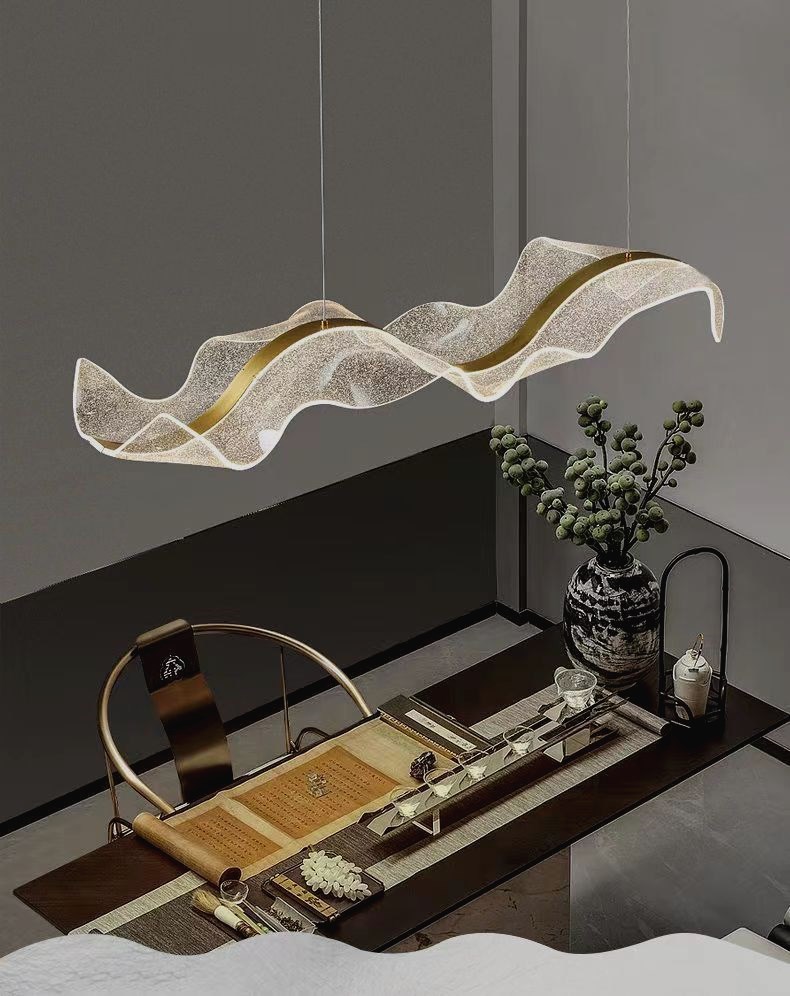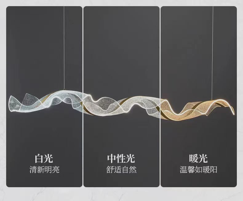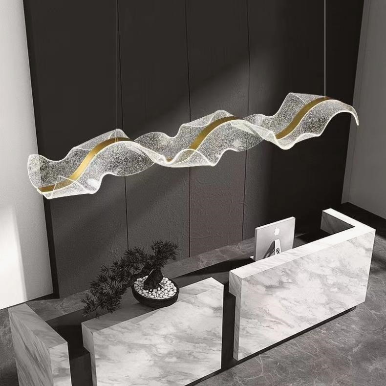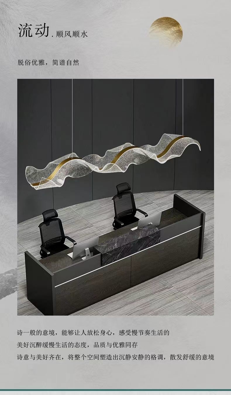飘带餐厅吊灯现代简约酒店前台设计师艺术波浪吧台茶室收银台灯具