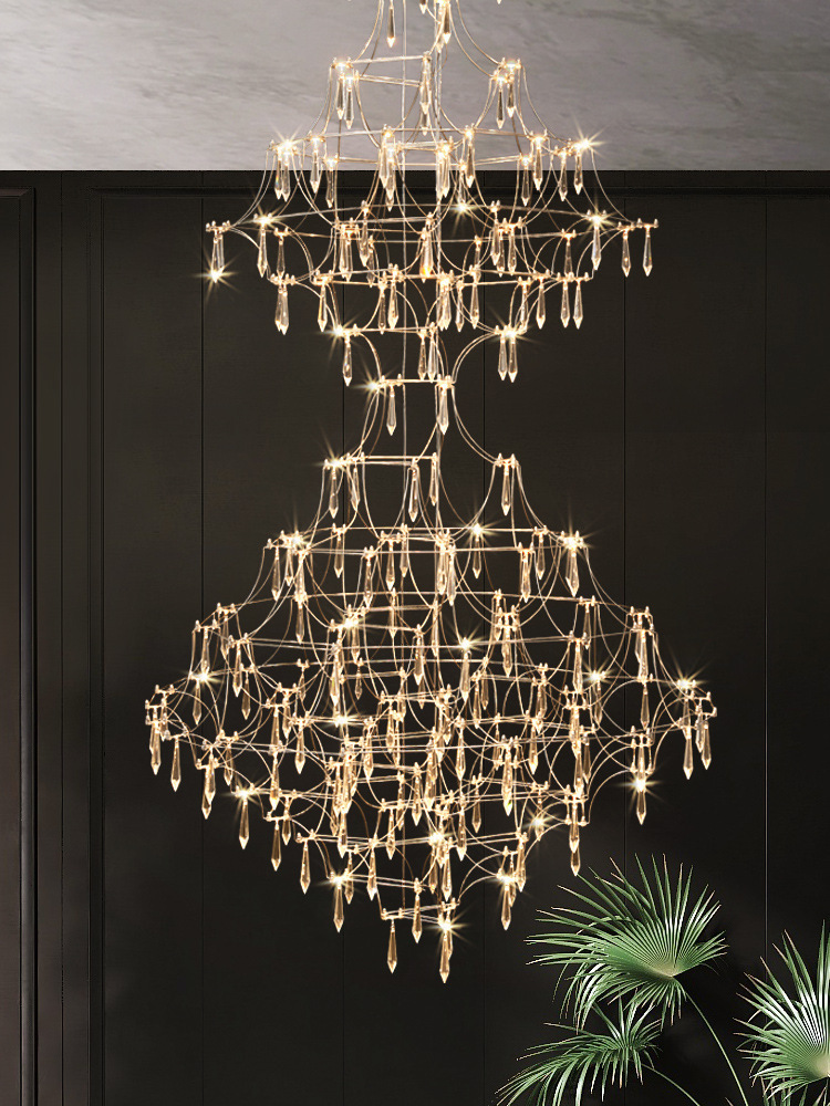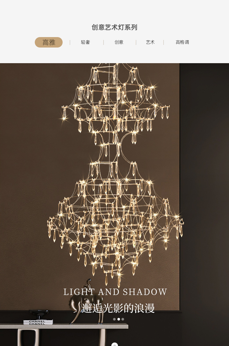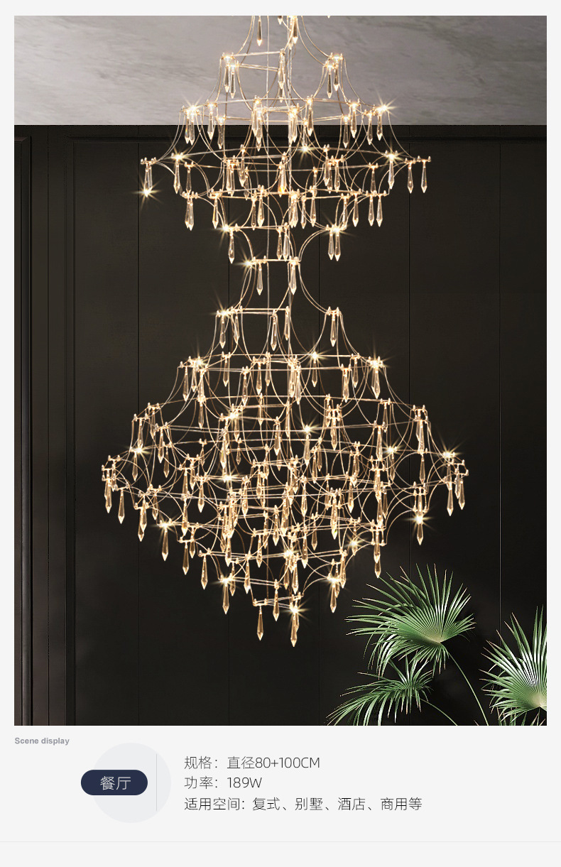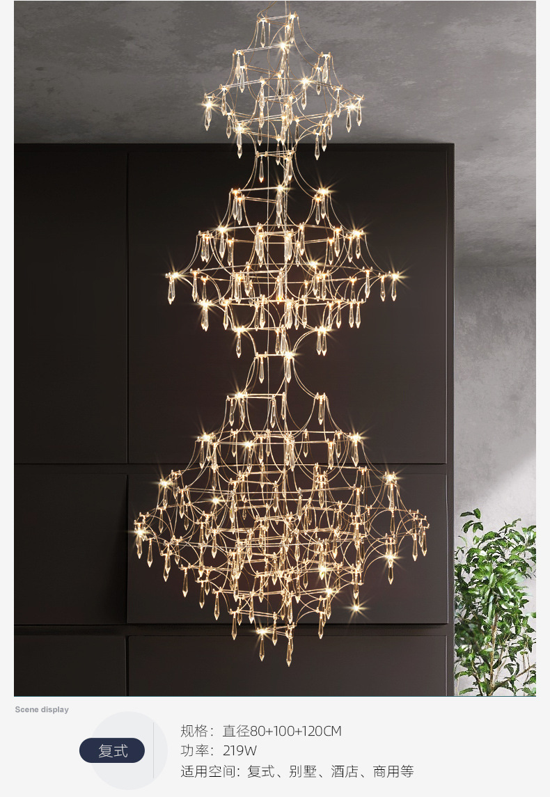 楼梯吊灯长吊灯别墅客厅大吊灯loft复式楼挑空中空跃层水晶大吊灯