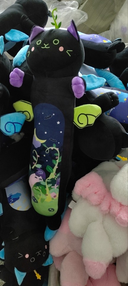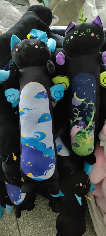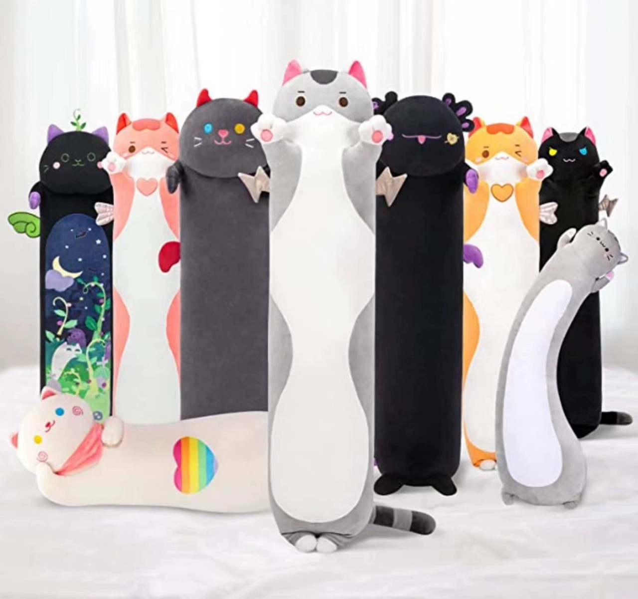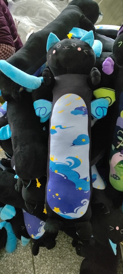 跨境品七彩猫咪抱枕蝾螈黑色猫咪长条抱枕夹枕靠枕万圣节送男女友