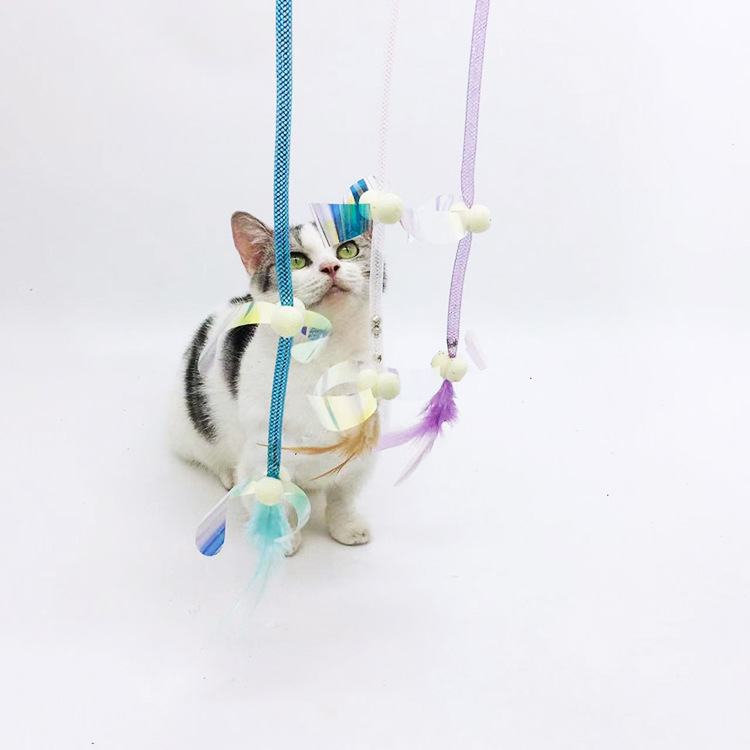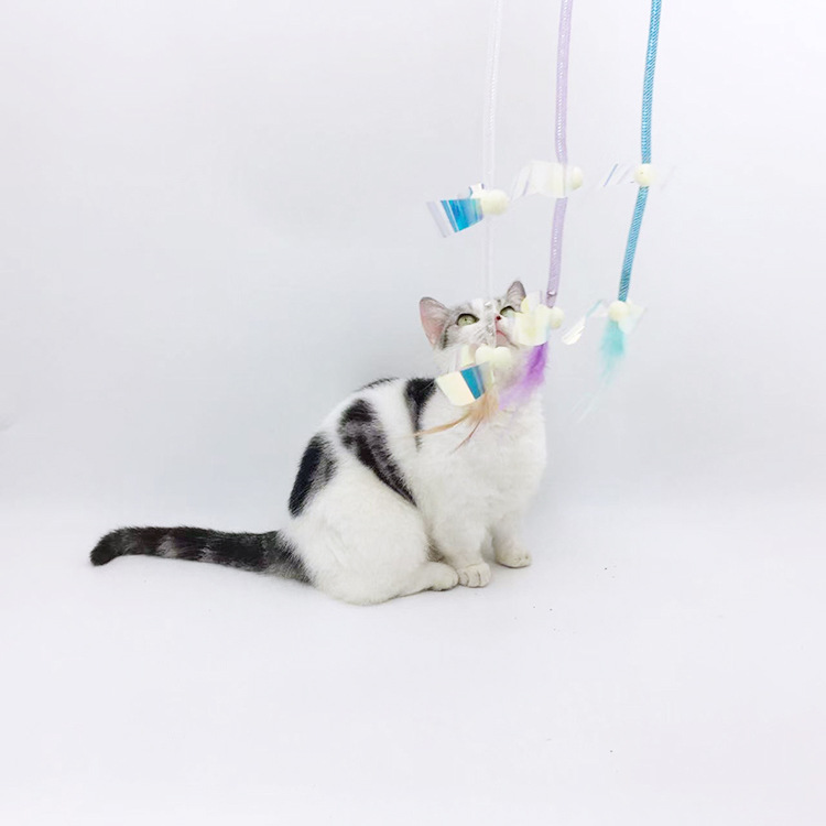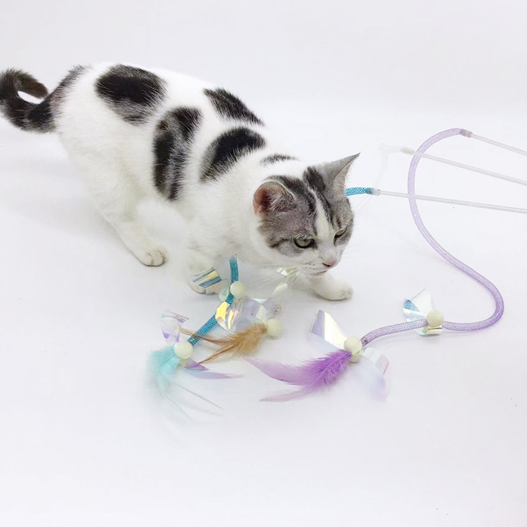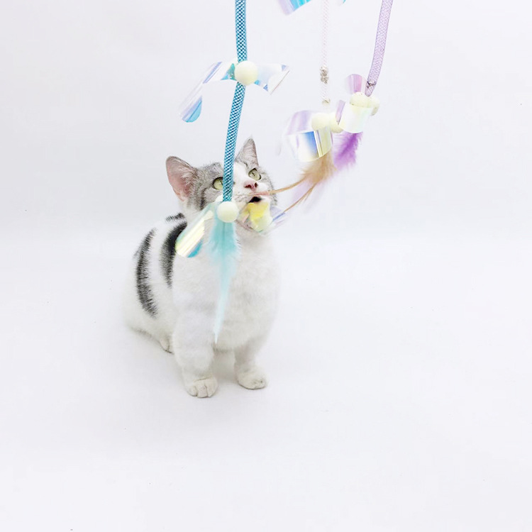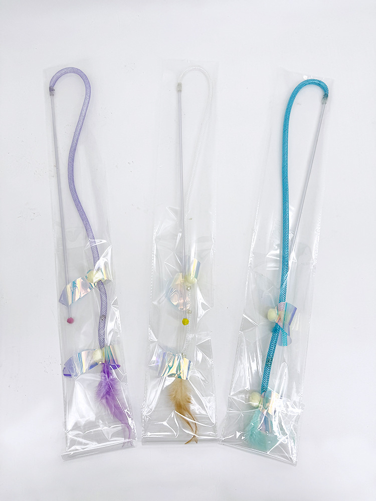 星智猫厂家长杆手持逗猫棒弹力网管毛绒羽毛铃铛亮片猫玩具耐啃咬