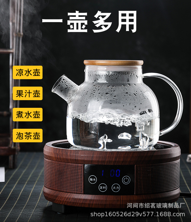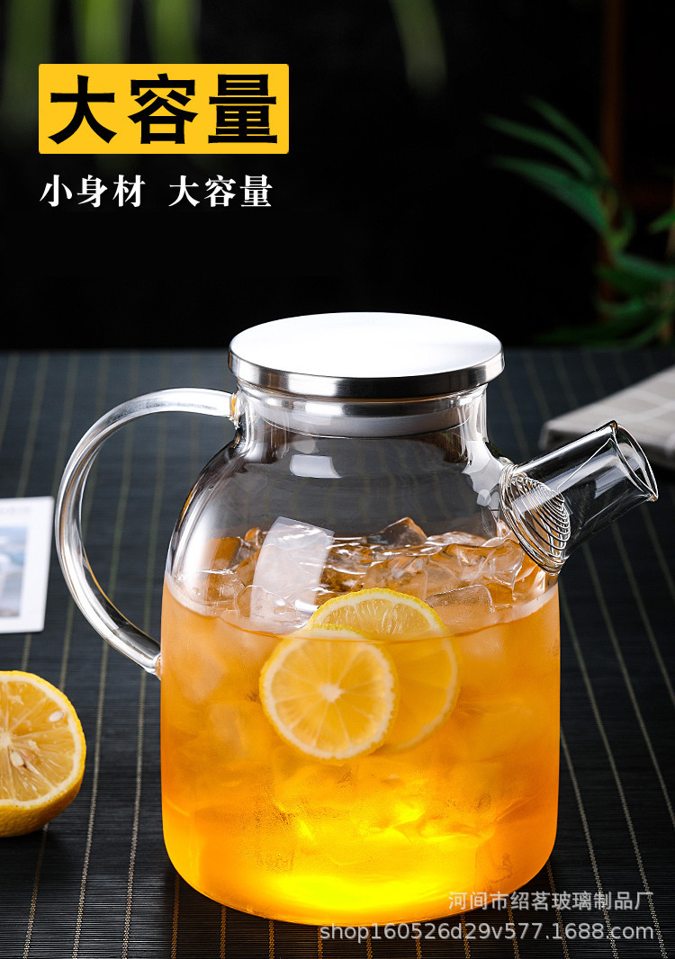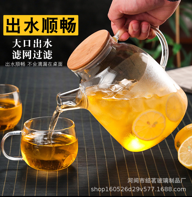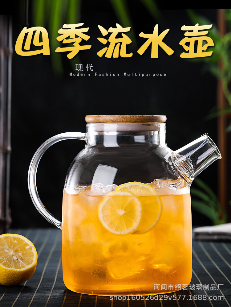 玻璃冷水壶 竹盖大小流水壶 家用大容量果汁饮料壶 办公室扎壶