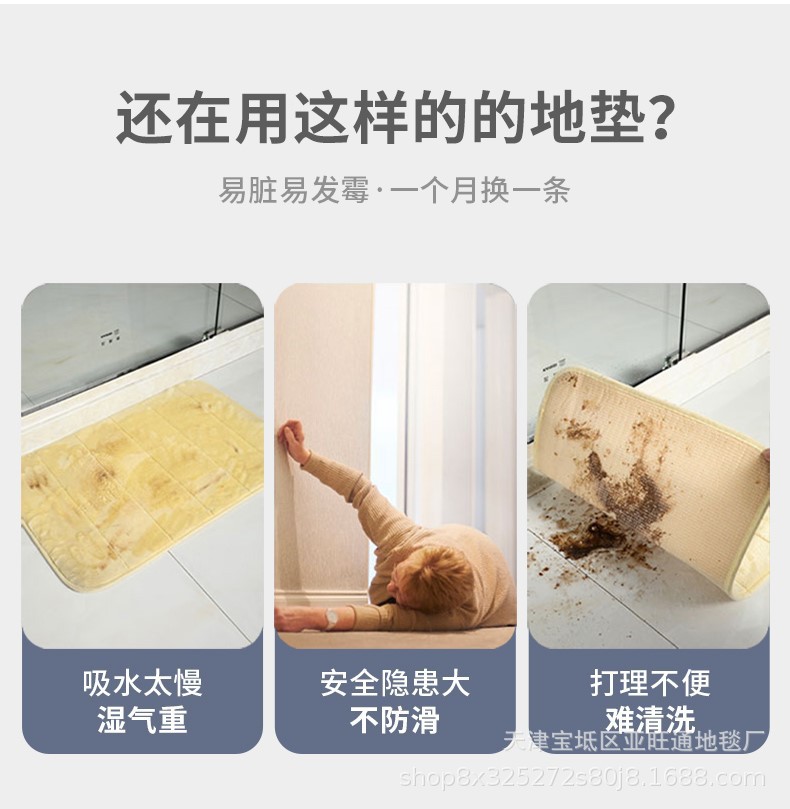 极简纯色地垫厂家批发家用浴室卫生间吸水垫入户门口阻滑硅藻泥垫