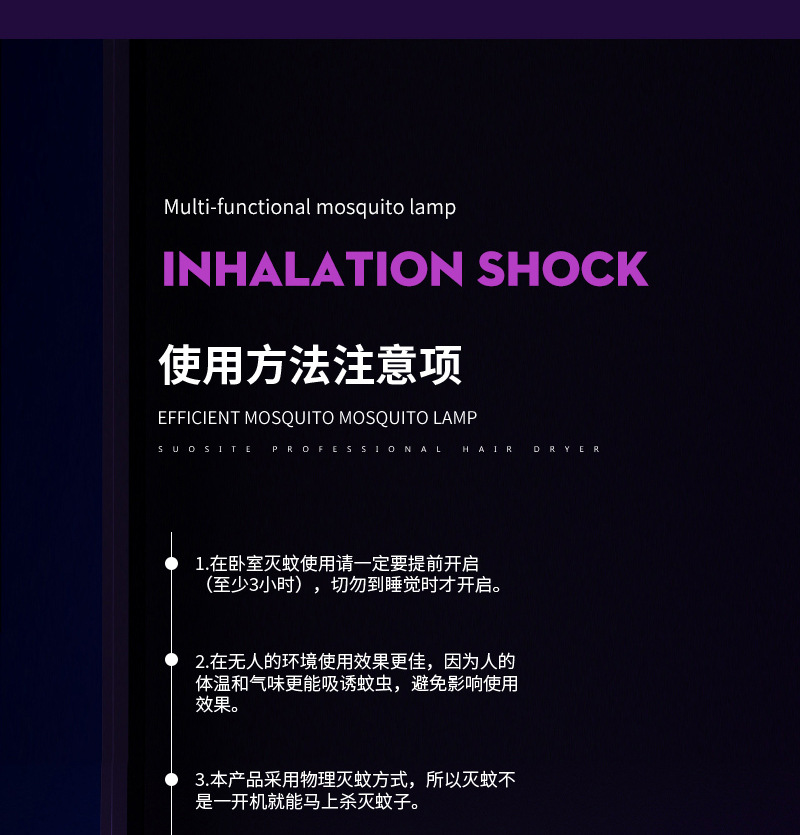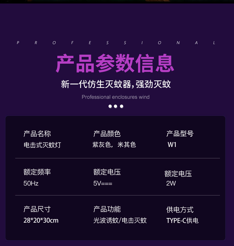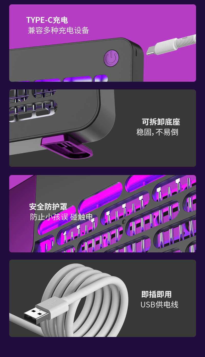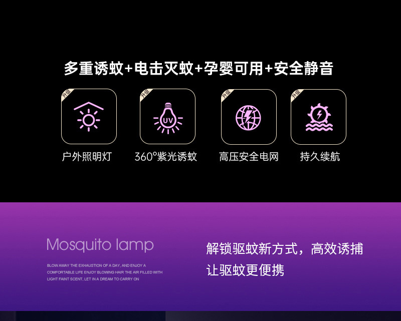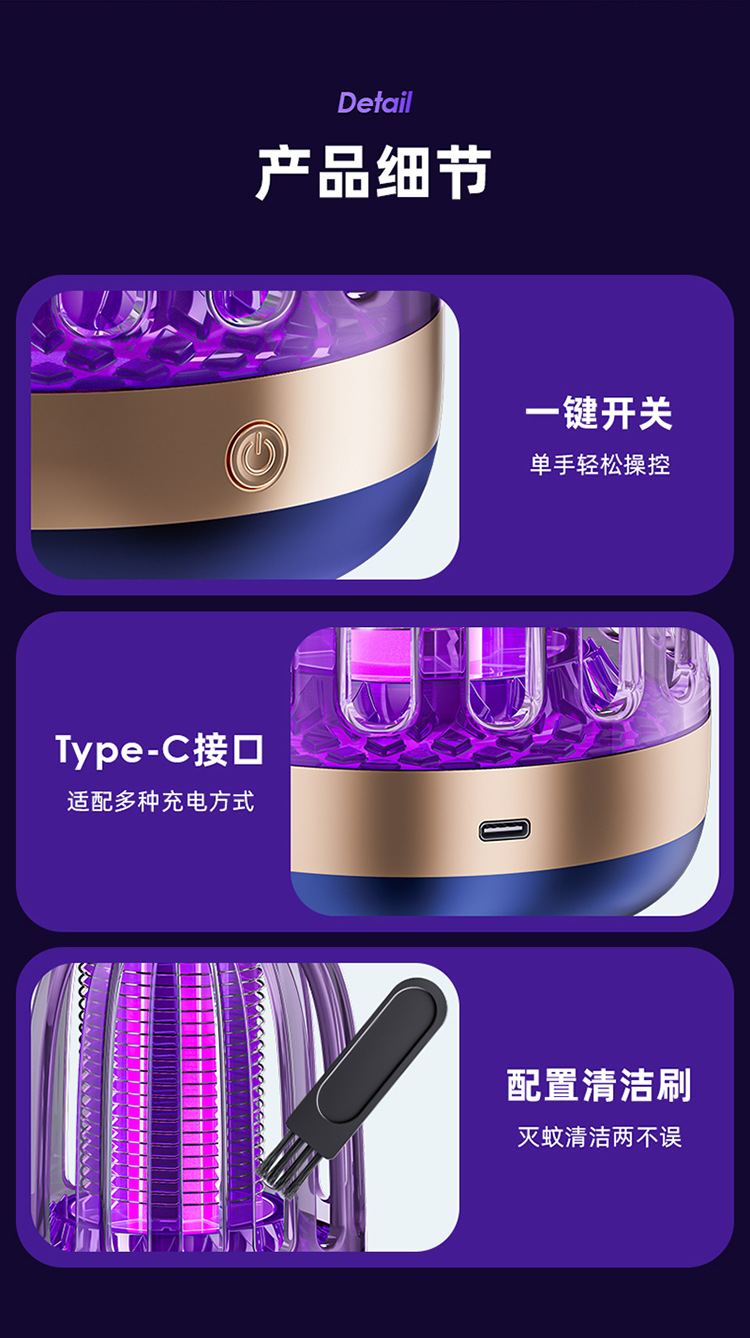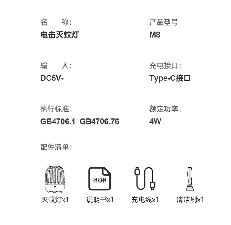 - 灭蚊驱蚊方式:电击型