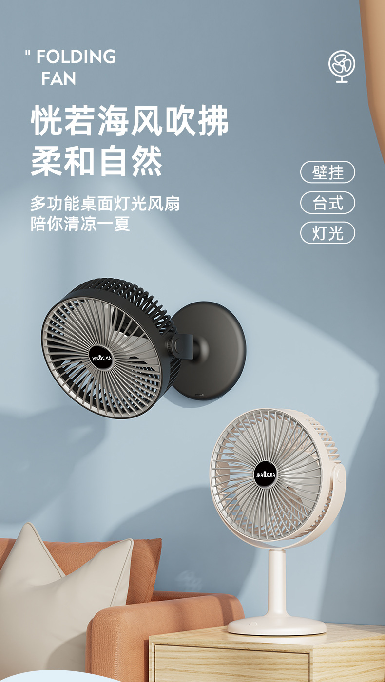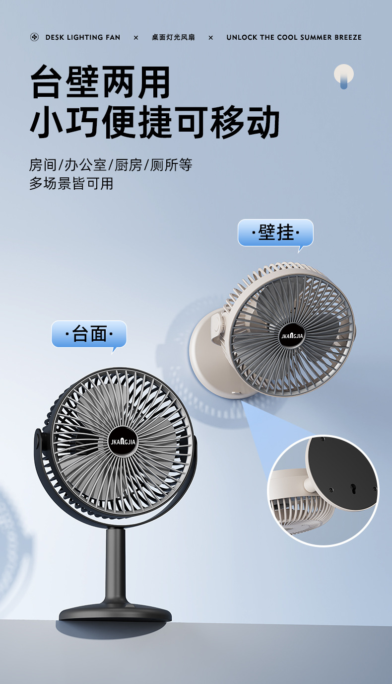 2025多功能壁挂灯光风扇充电风扇桌面办公室家用风扇跨境爆款风扇