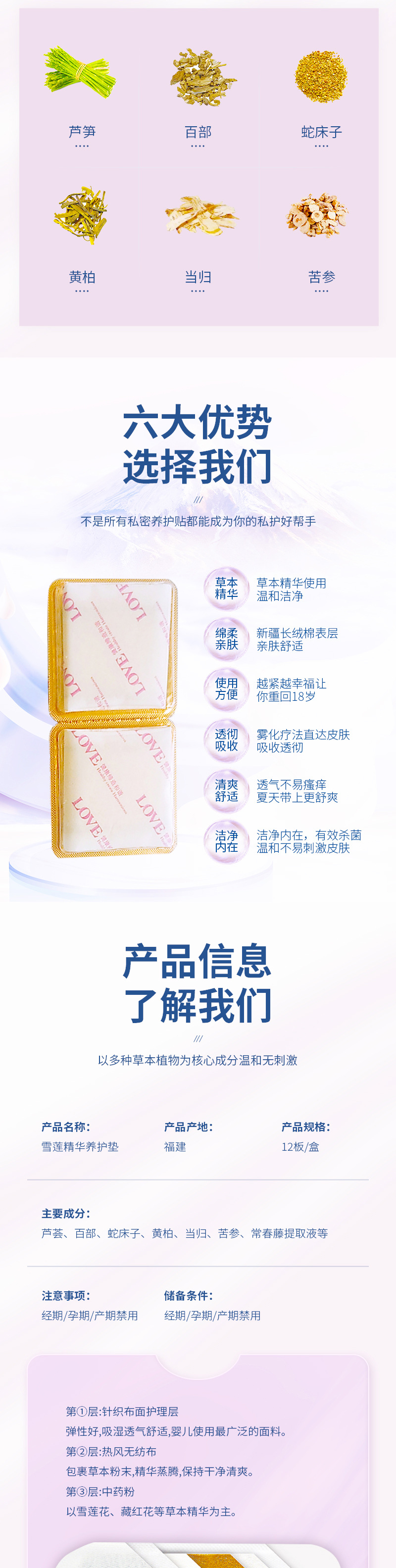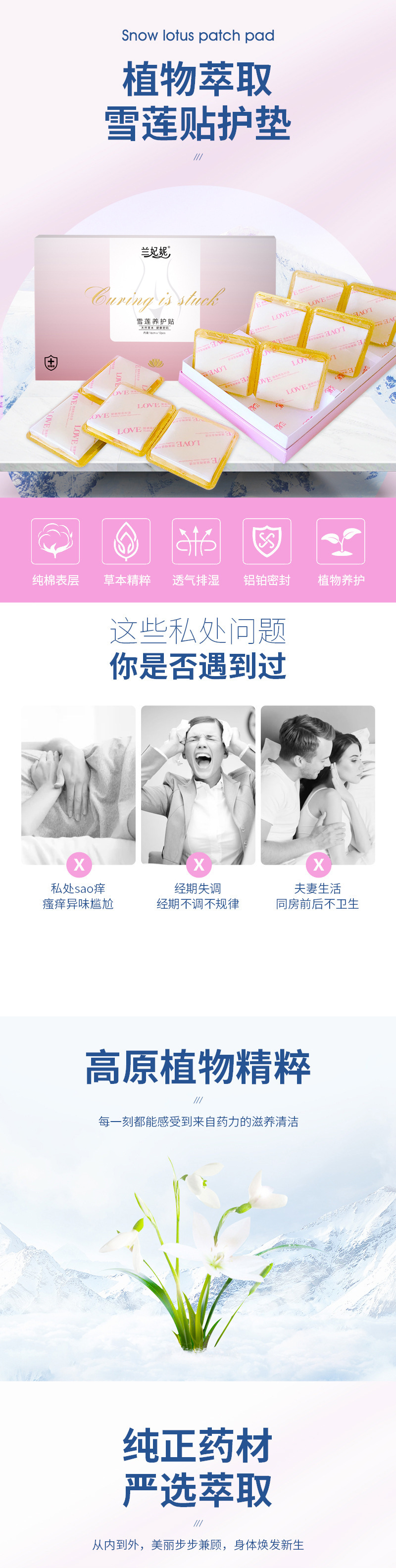 厂家批发女性私处护理贴 定制雪莲贴盒装 中草药卫生巾雪莲护垫
