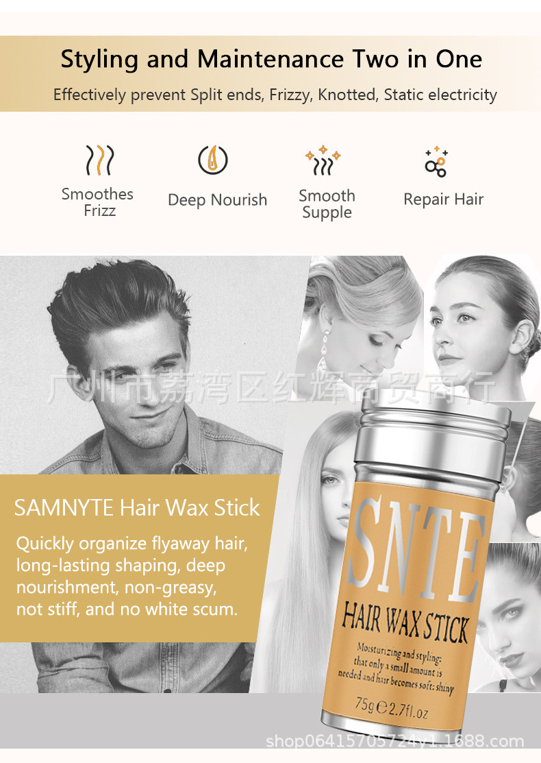 跨境SNTE发蜡棒碎发棒头发整理器防毛躁编发固体发蜡贴标生产