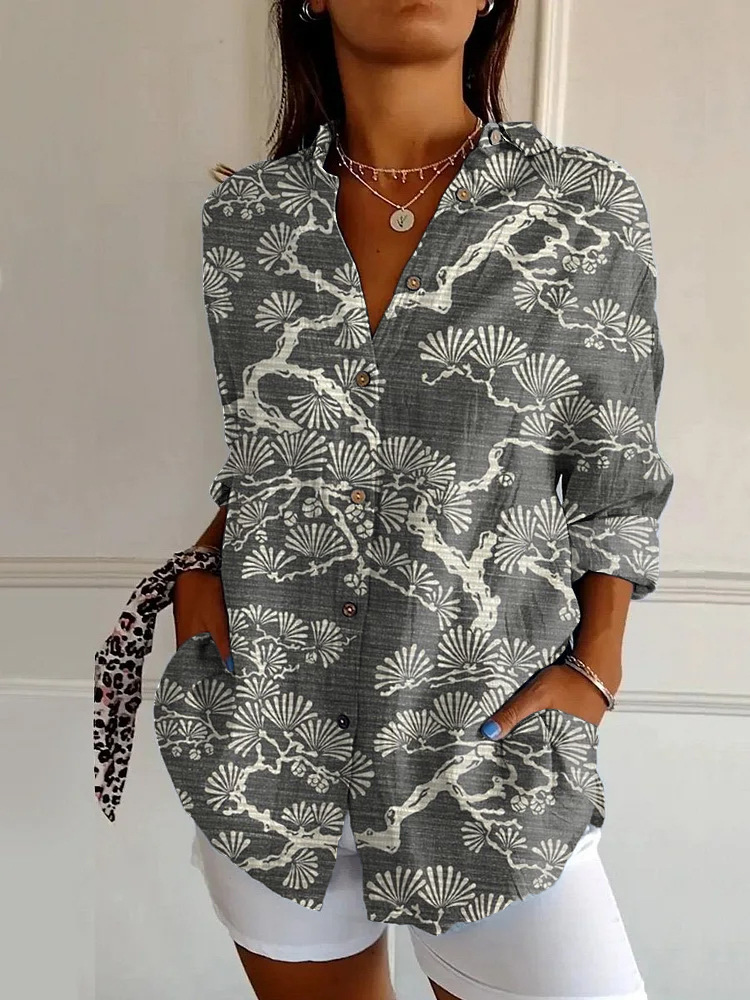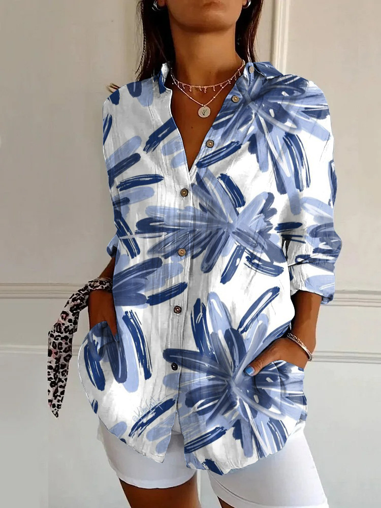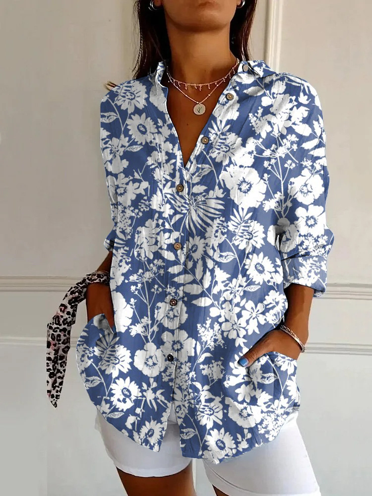 2025新款女士长款衬衫夏季欧美潮流半袖花卉短袖图案印花3D 可定