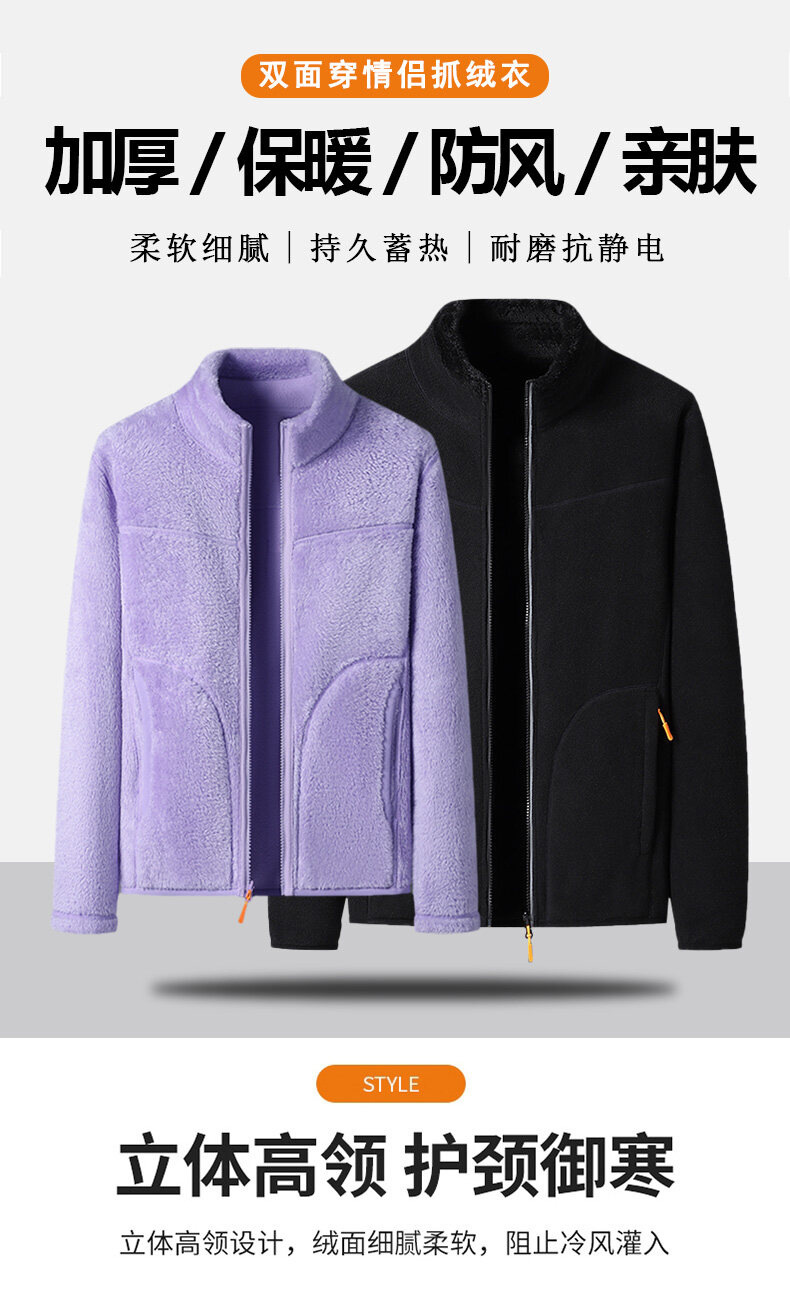 情侣款抓外套男2023秋冬新款双面穿夹克保暖加厚摇粒绒紧身上