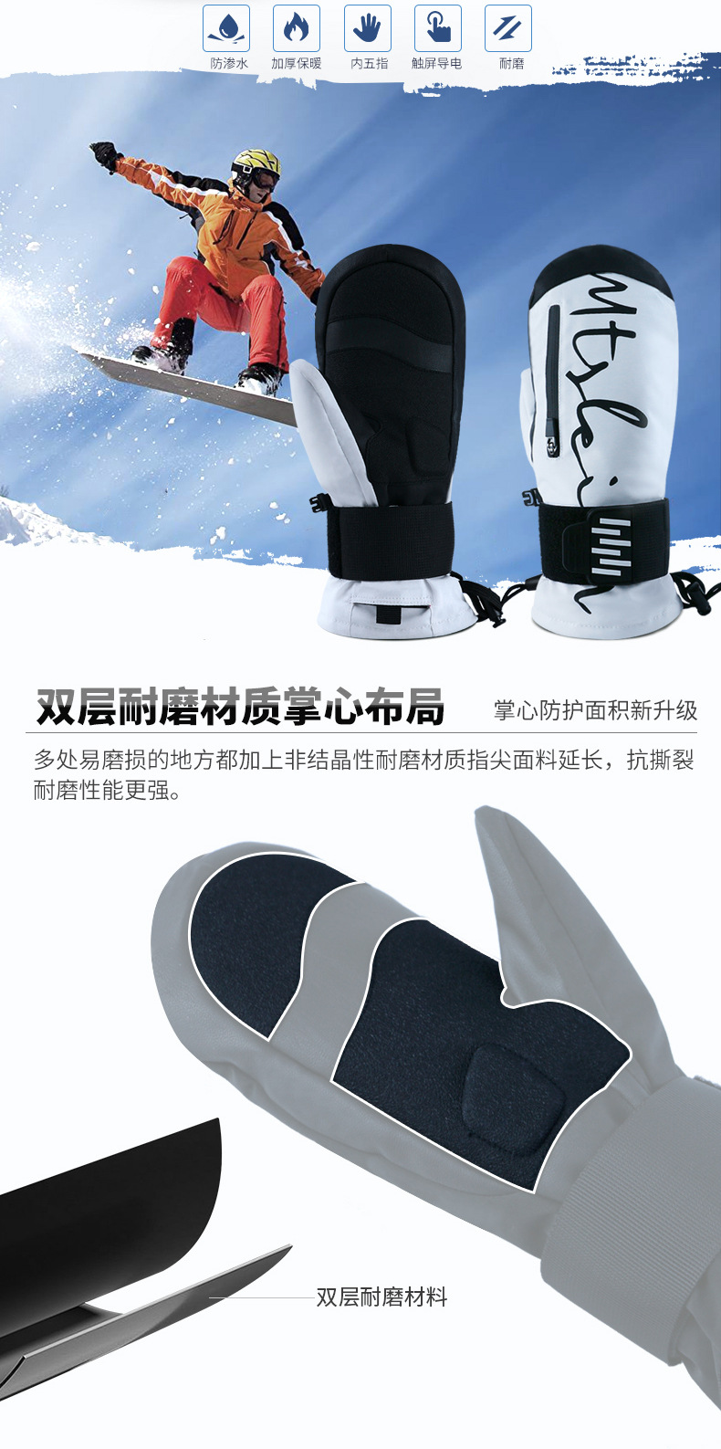 24雪季内置护腕滑雪手套男女单板防水防寒保暖减震可触屏滑雪手套