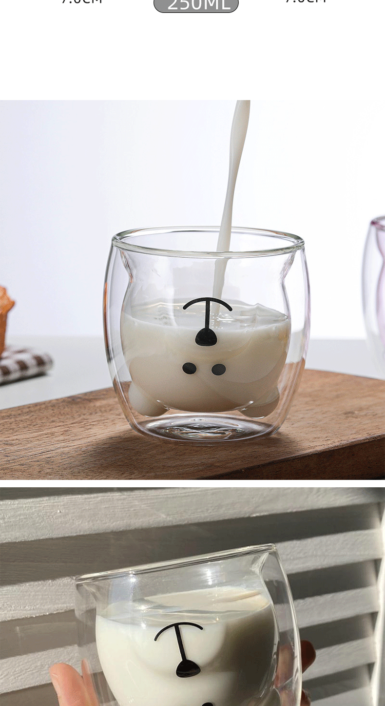 小熊杯双层玻璃杯高硼硅透明隔热玻璃果汁咖啡杯蛋形透明隔热茶水