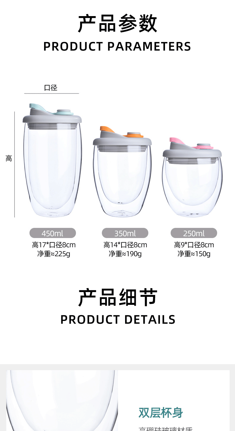 带盖水杯双层玻璃杯隔热家用冷饮带手柄牛奶咖啡双层杯