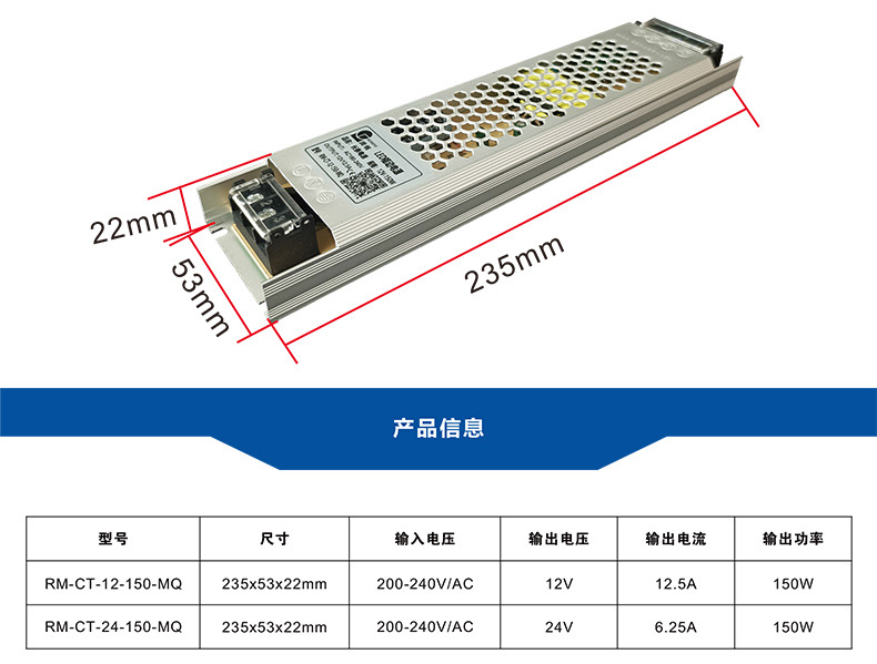 150W灯带电源恒压12V/24V批发室内灯箱橱柜变压器线性开关电源
