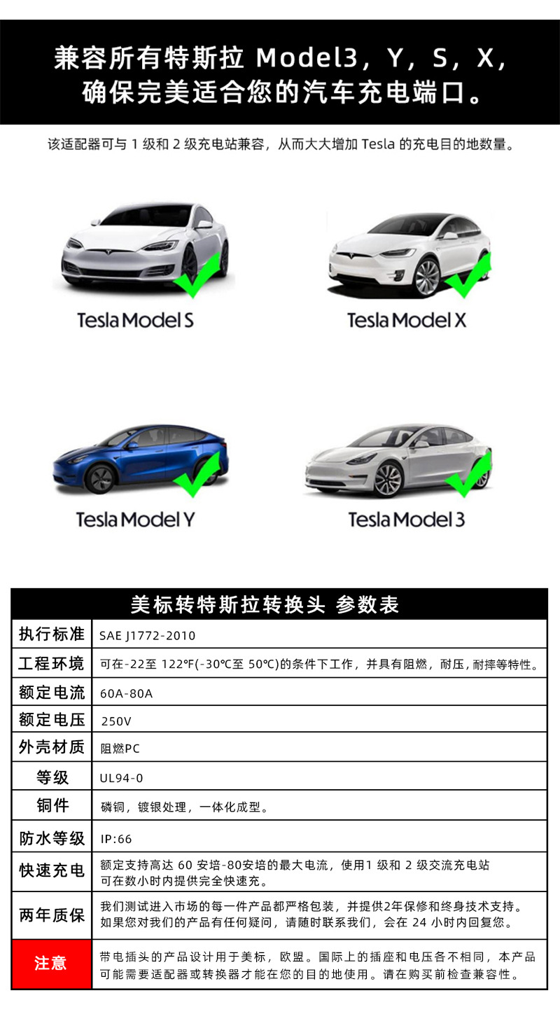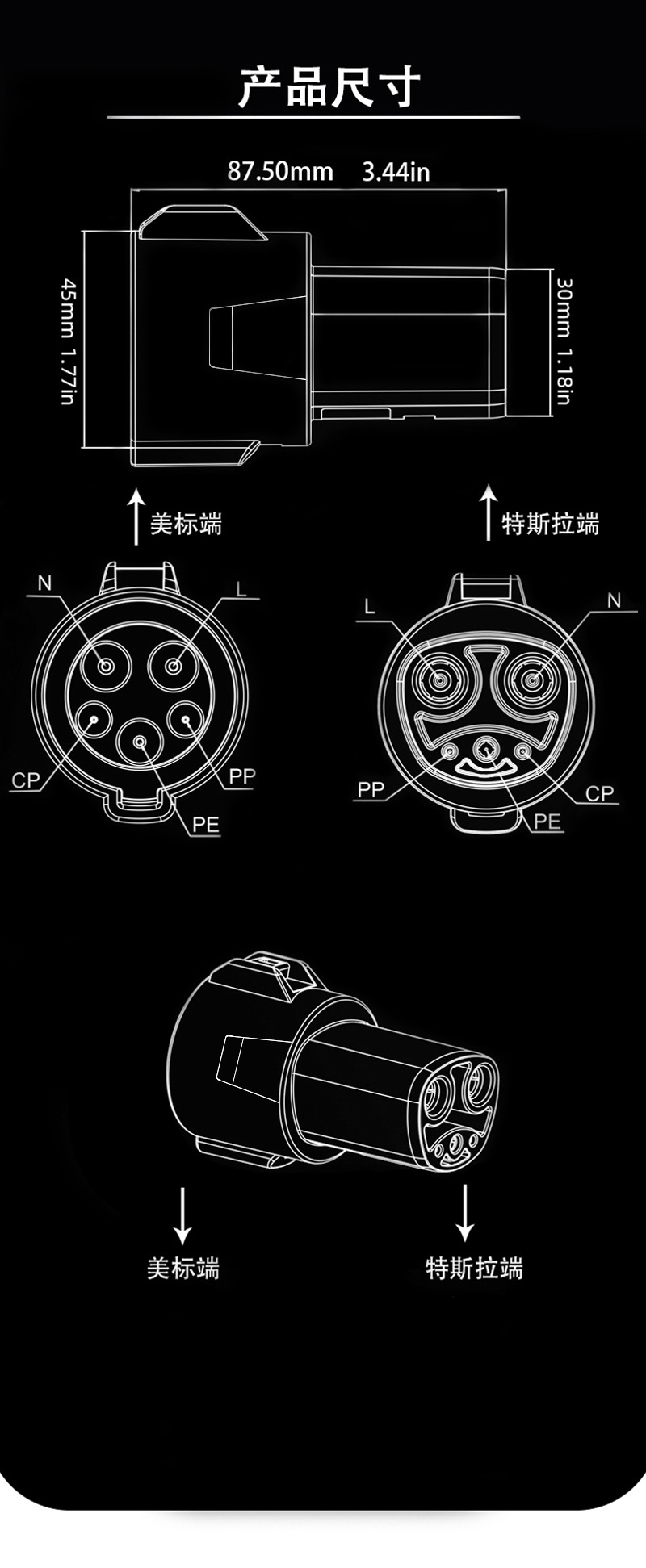 新能源特斯拉充电头美标交流充电器充电枪 电动汽车转换器转换头