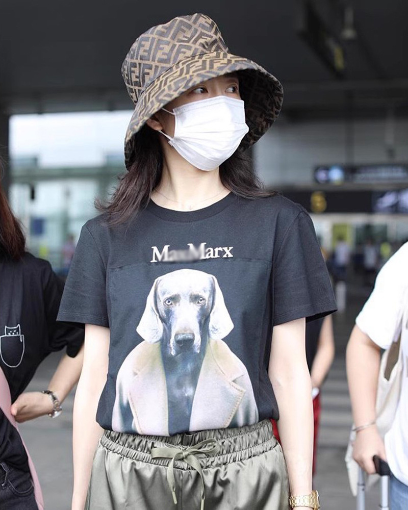 童瑶心明星同款max威玛猎犬狗头贴布侦探短袖t恤纯棉夏季独特上衣