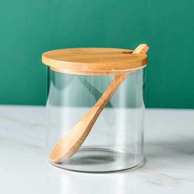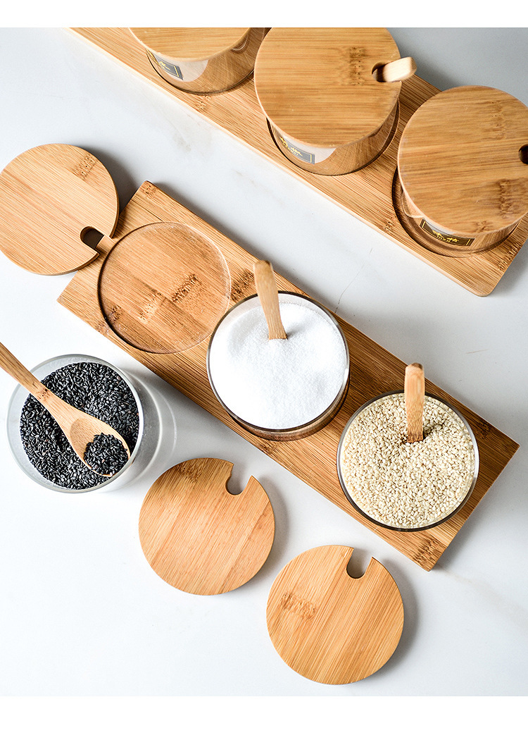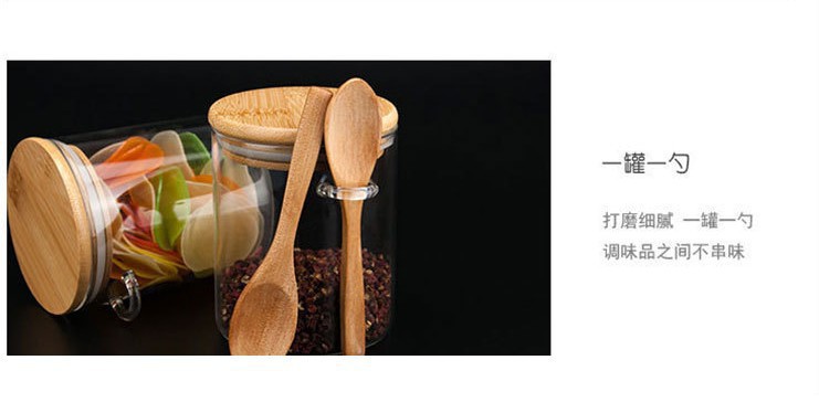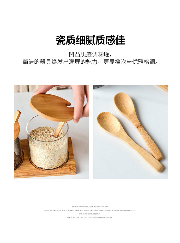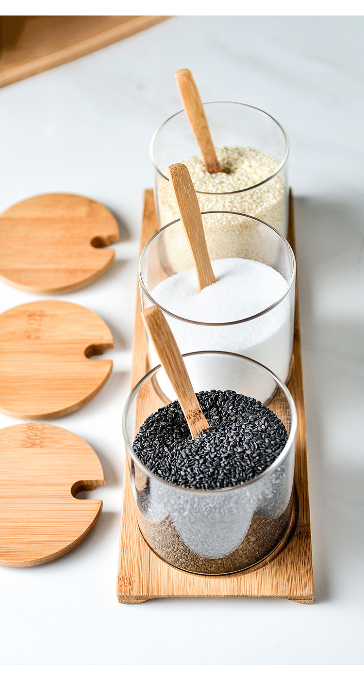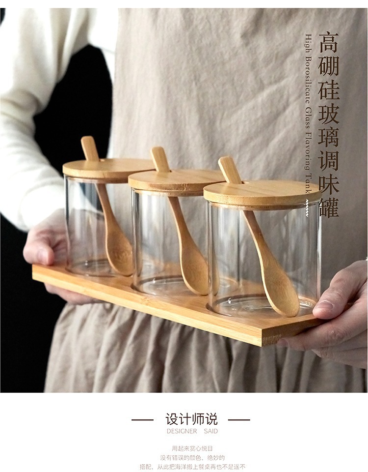 定制日式玻璃调味罐套装高硼硅玻璃竹盖带勺调味罐三件套装调料罐