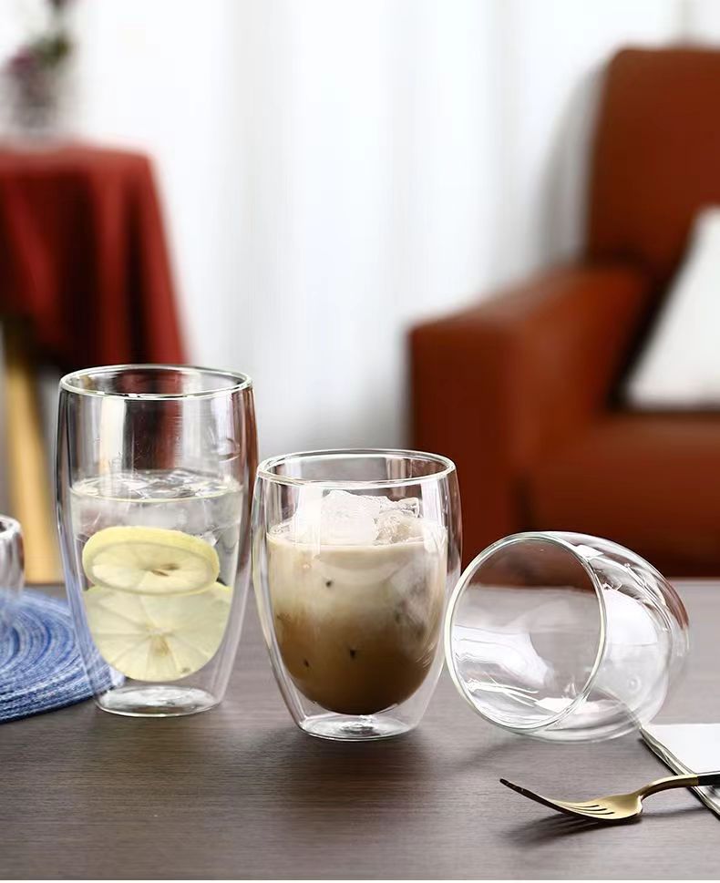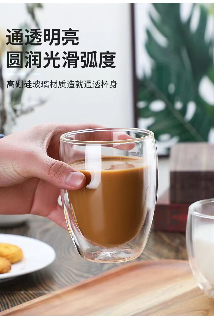 现货创意双层透明玻璃水杯家用双层玻璃蛋形杯冷饮牛奶果汁咖啡杯