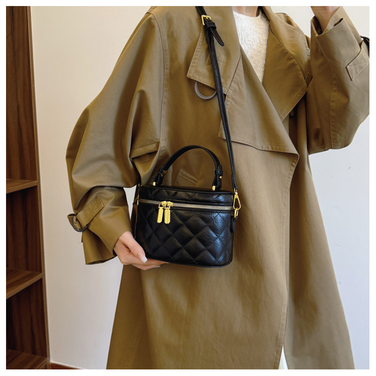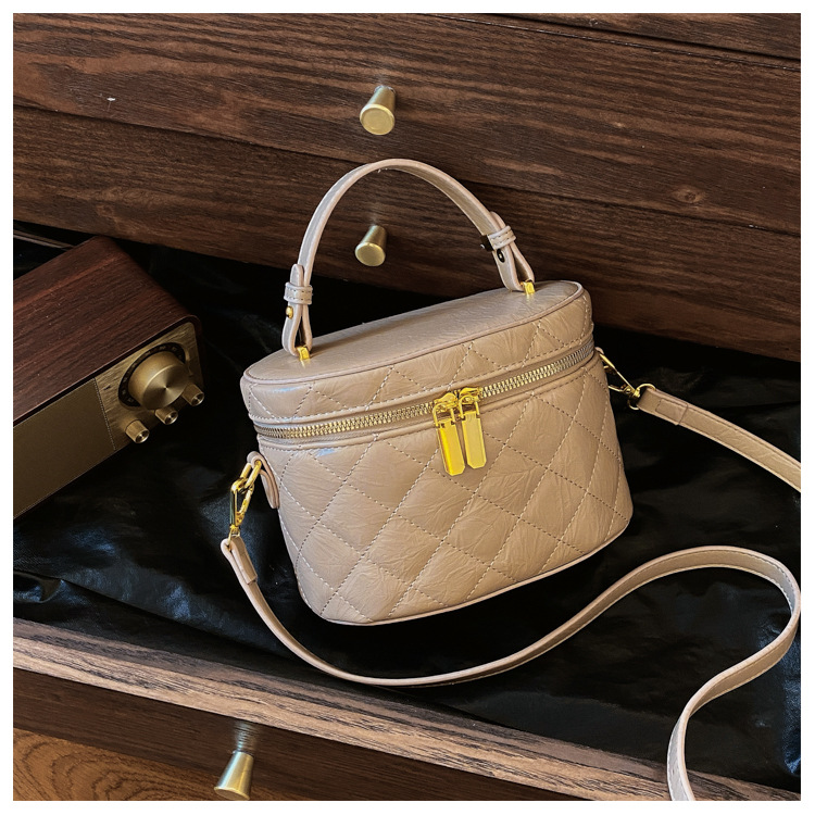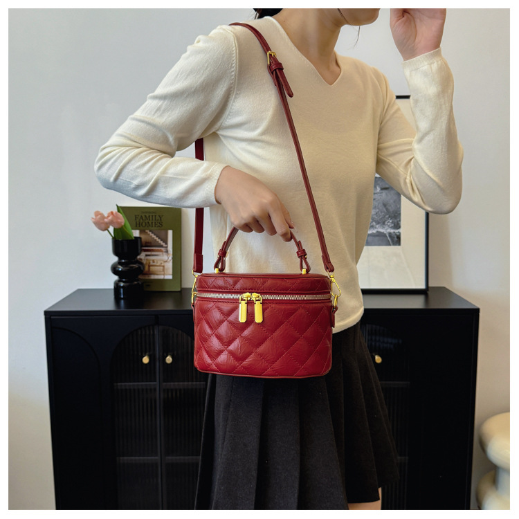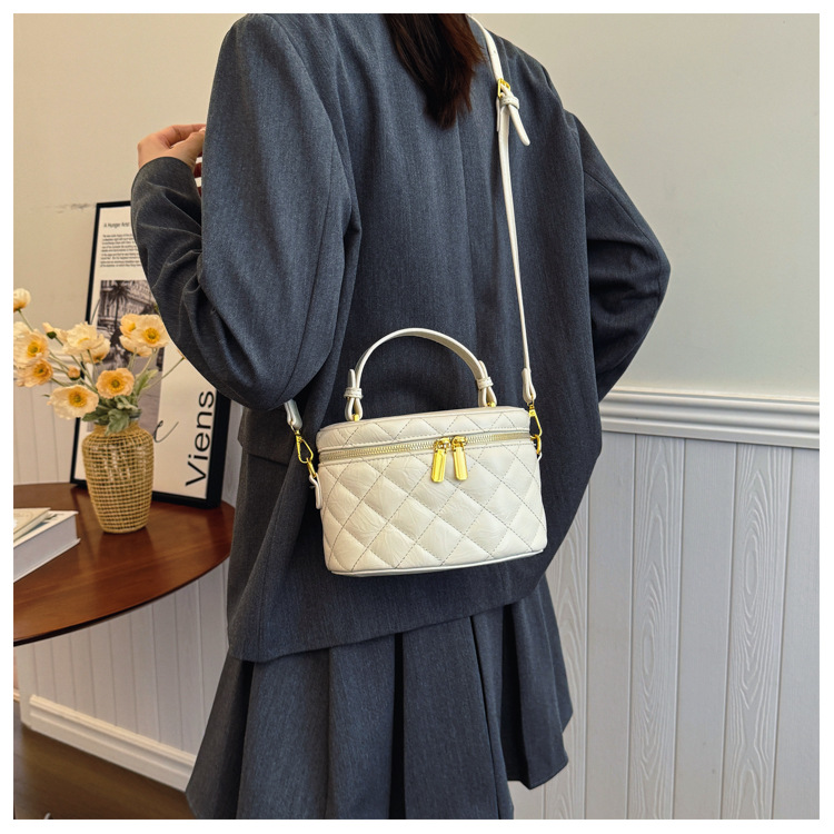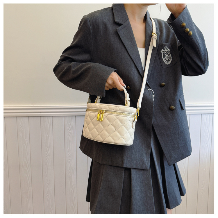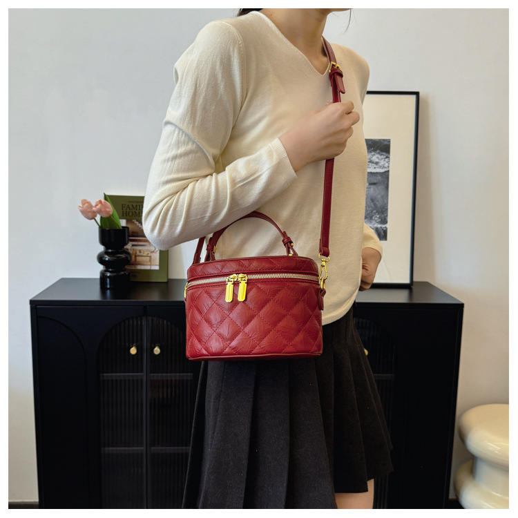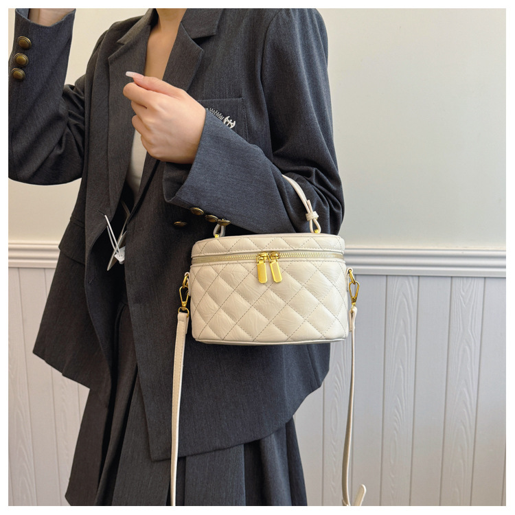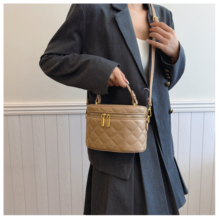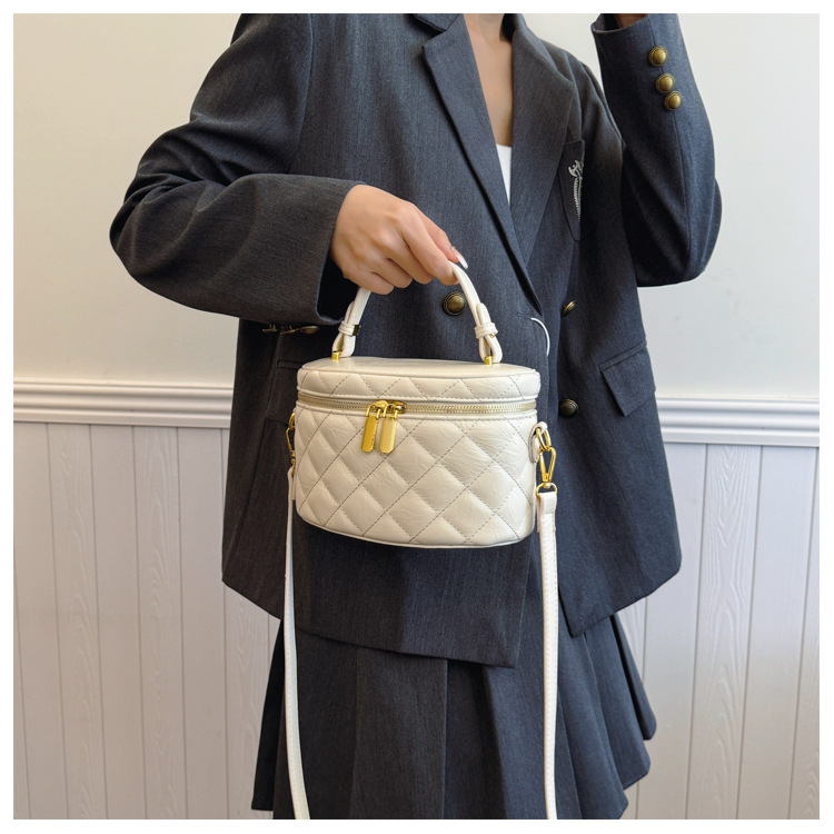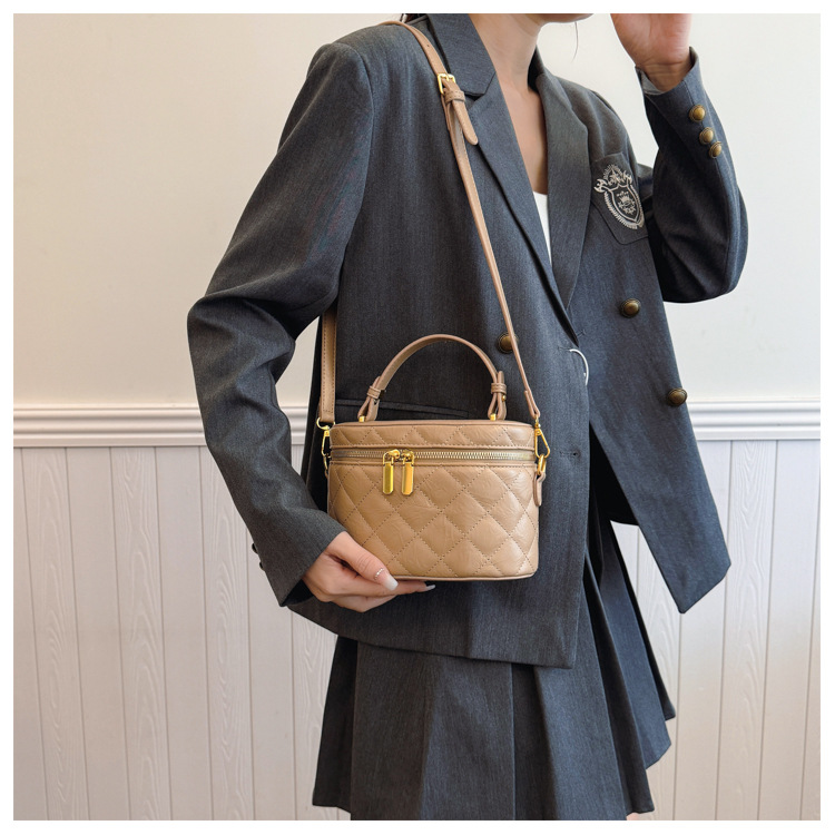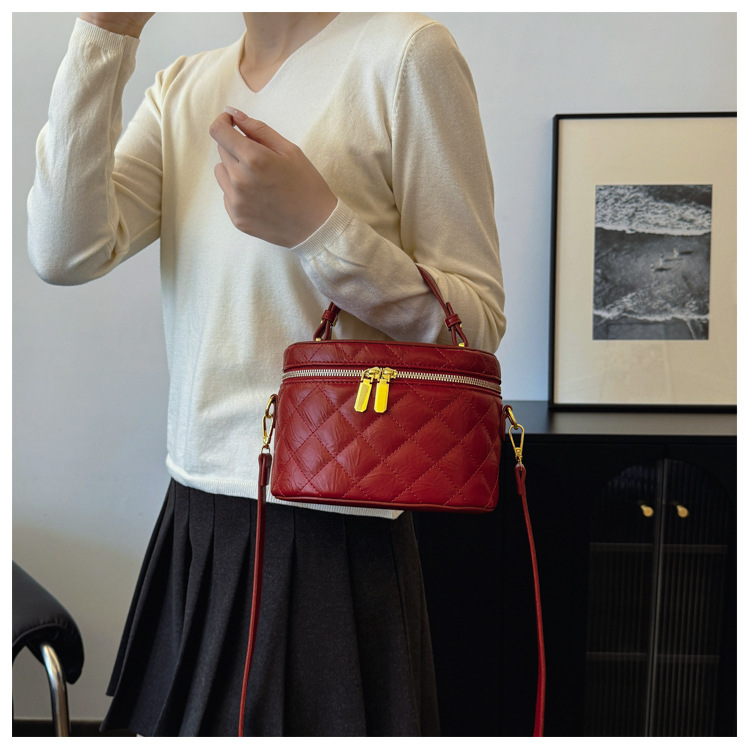 网红流行简约手提包女包2025新款菱格纹质感盒子水桶包小巧斜挎包