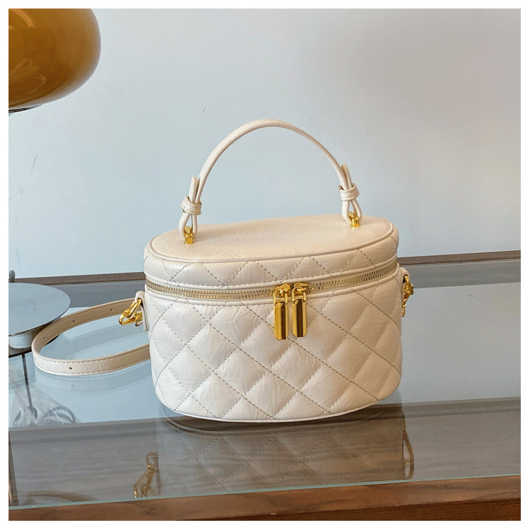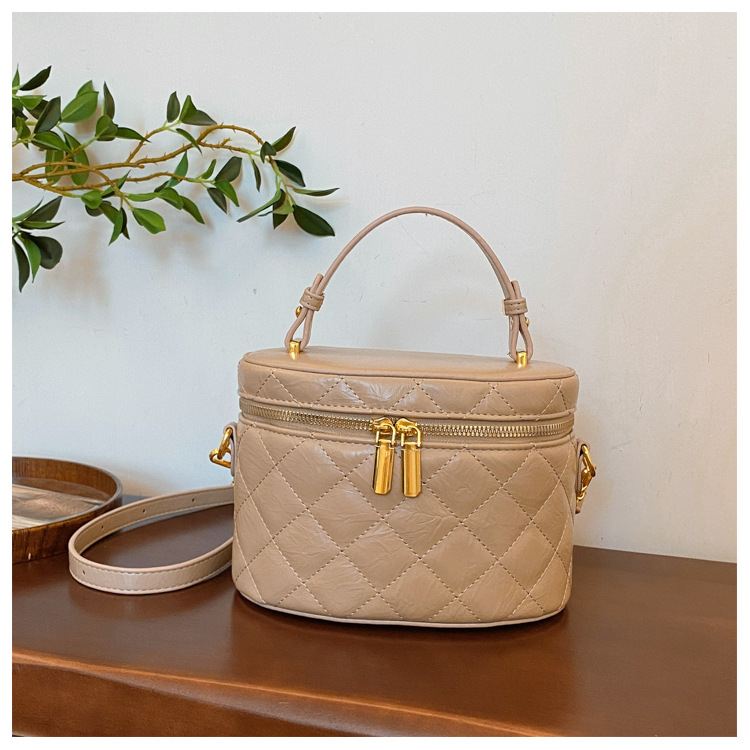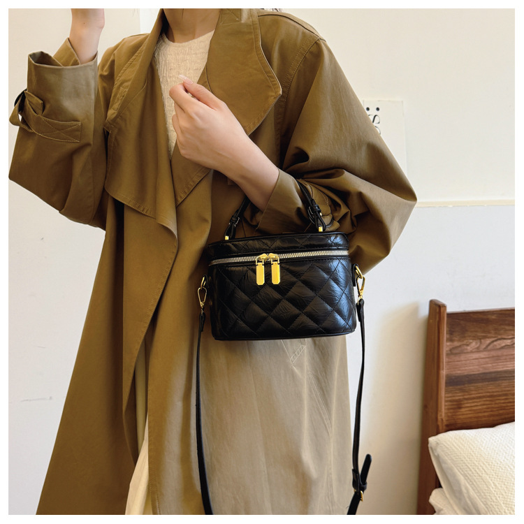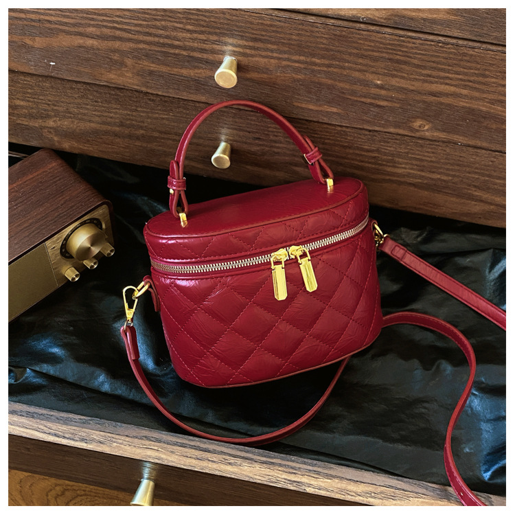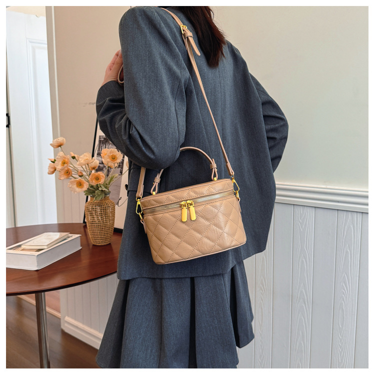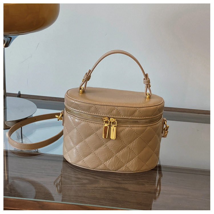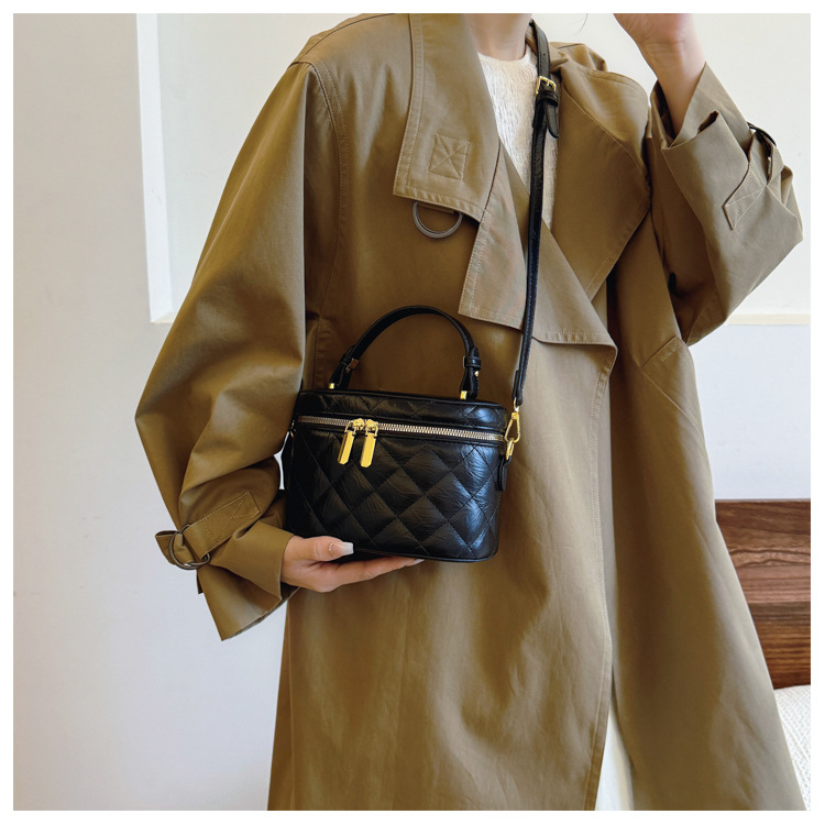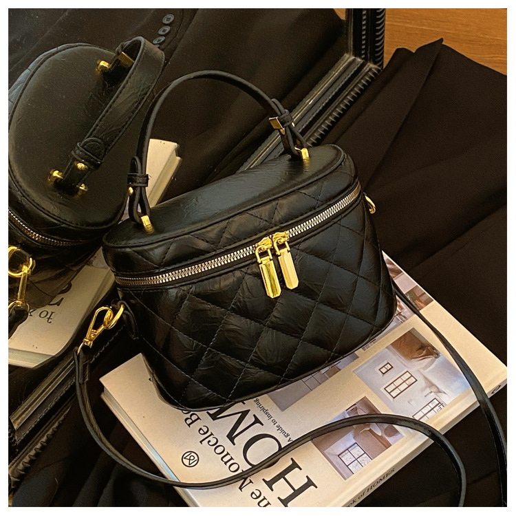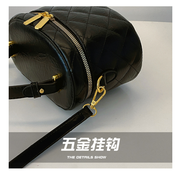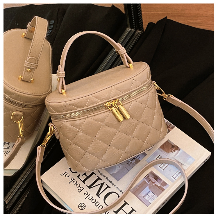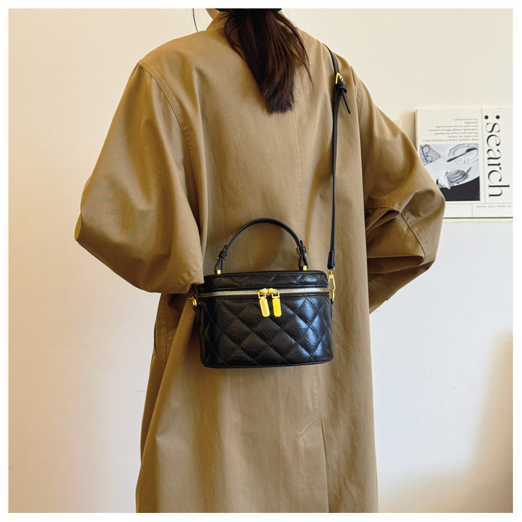 网红流行简约手提包女包2025新款菱格纹质感盒子水桶包小巧斜挎包