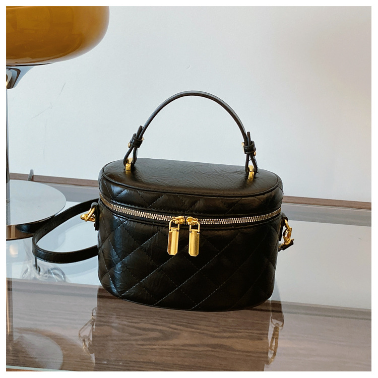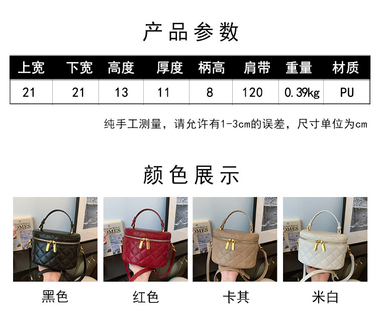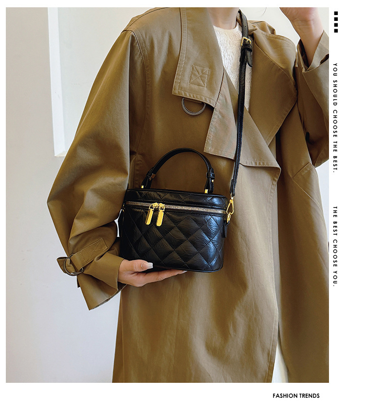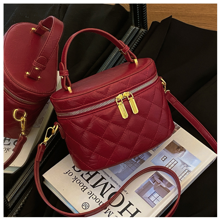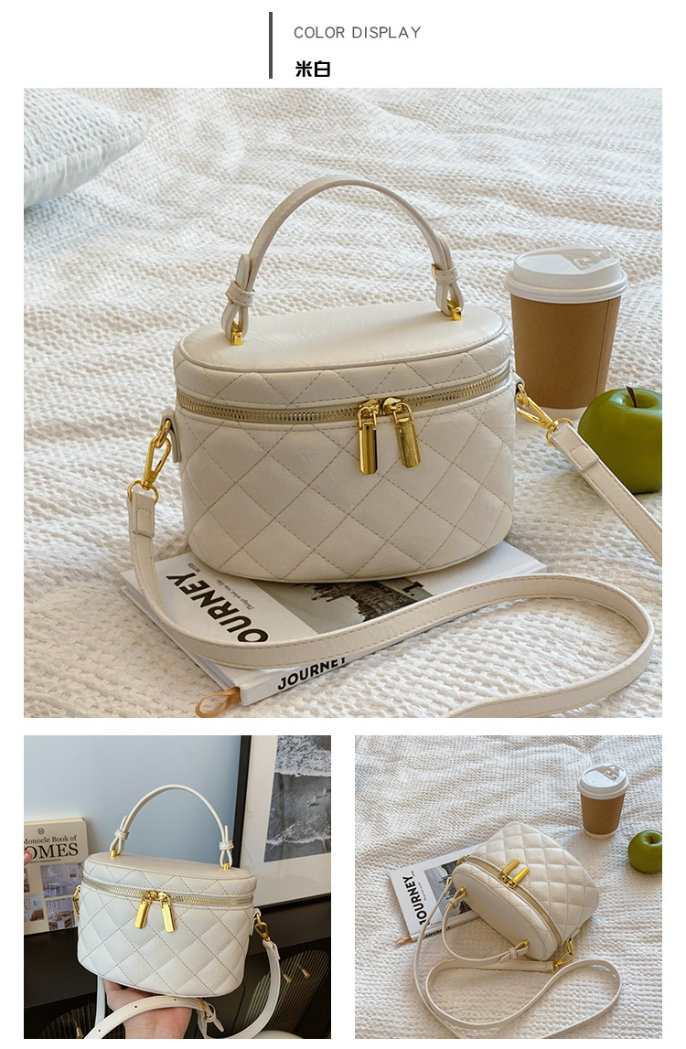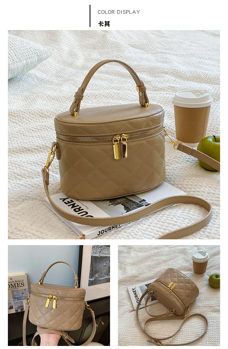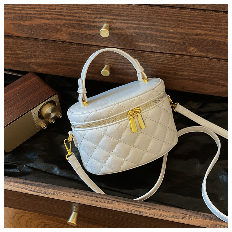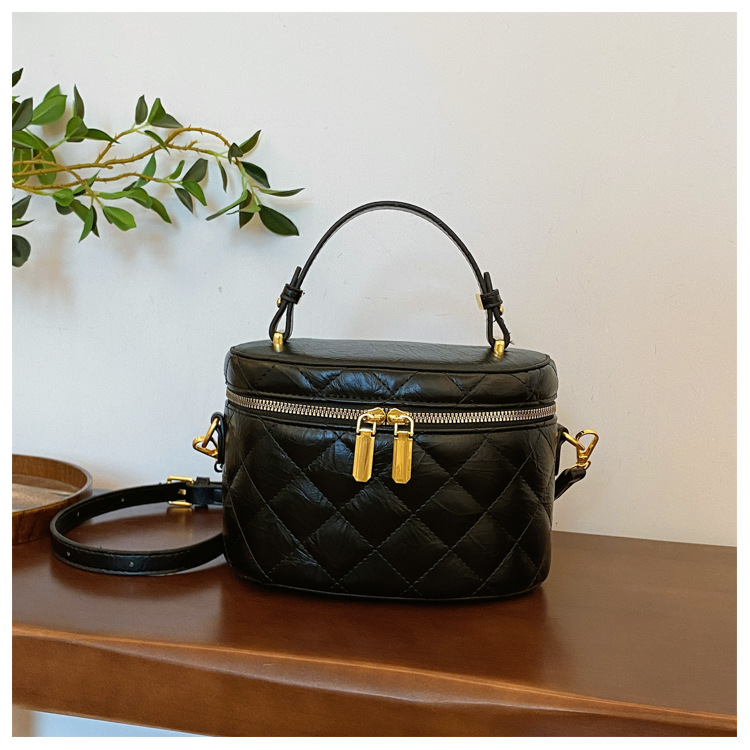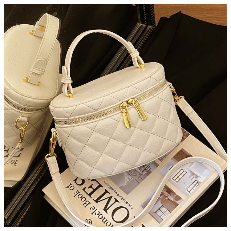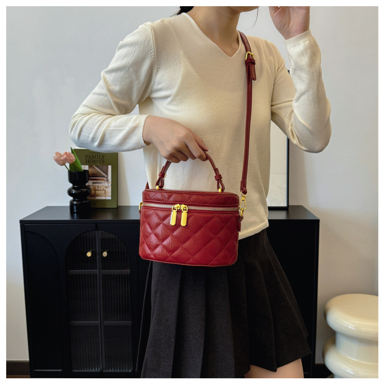 网红流行简约手提包女包2025新款菱格纹质感盒子水桶包小巧斜挎包