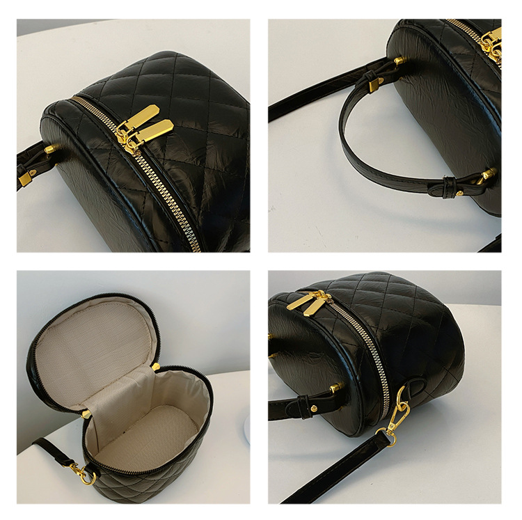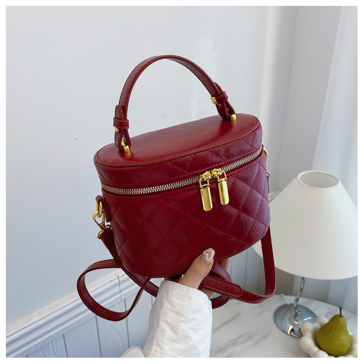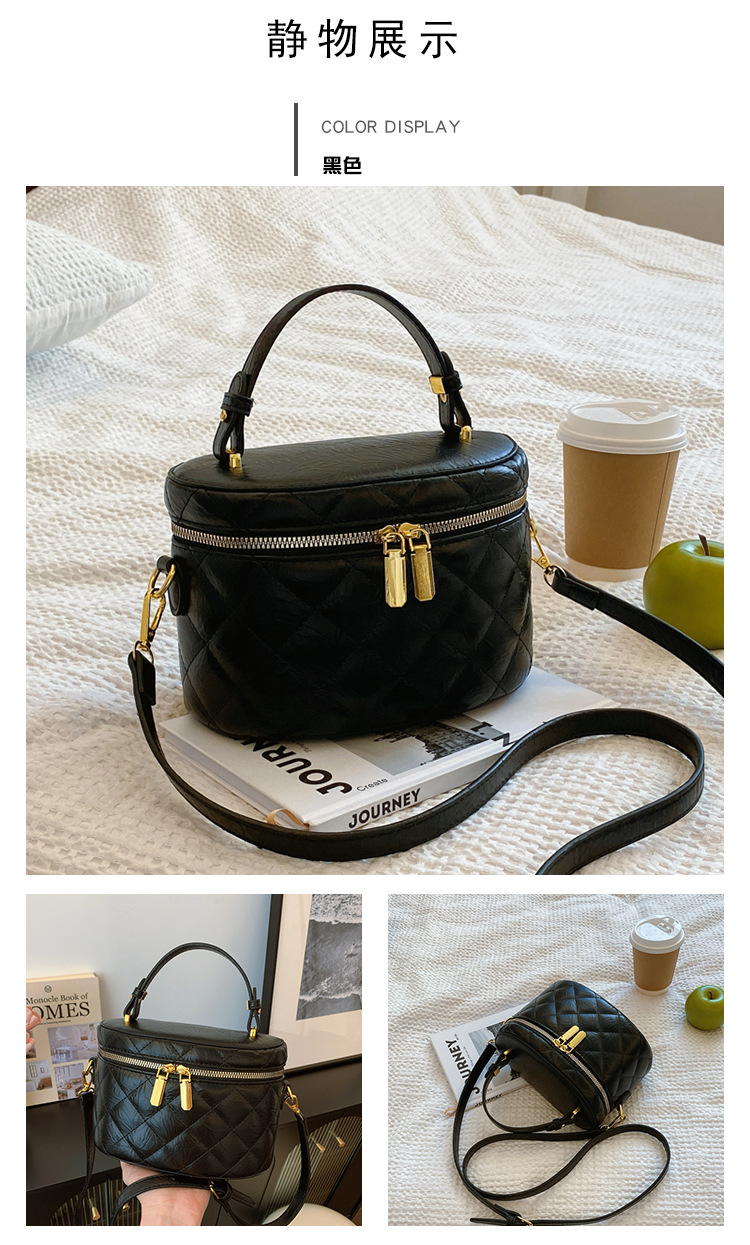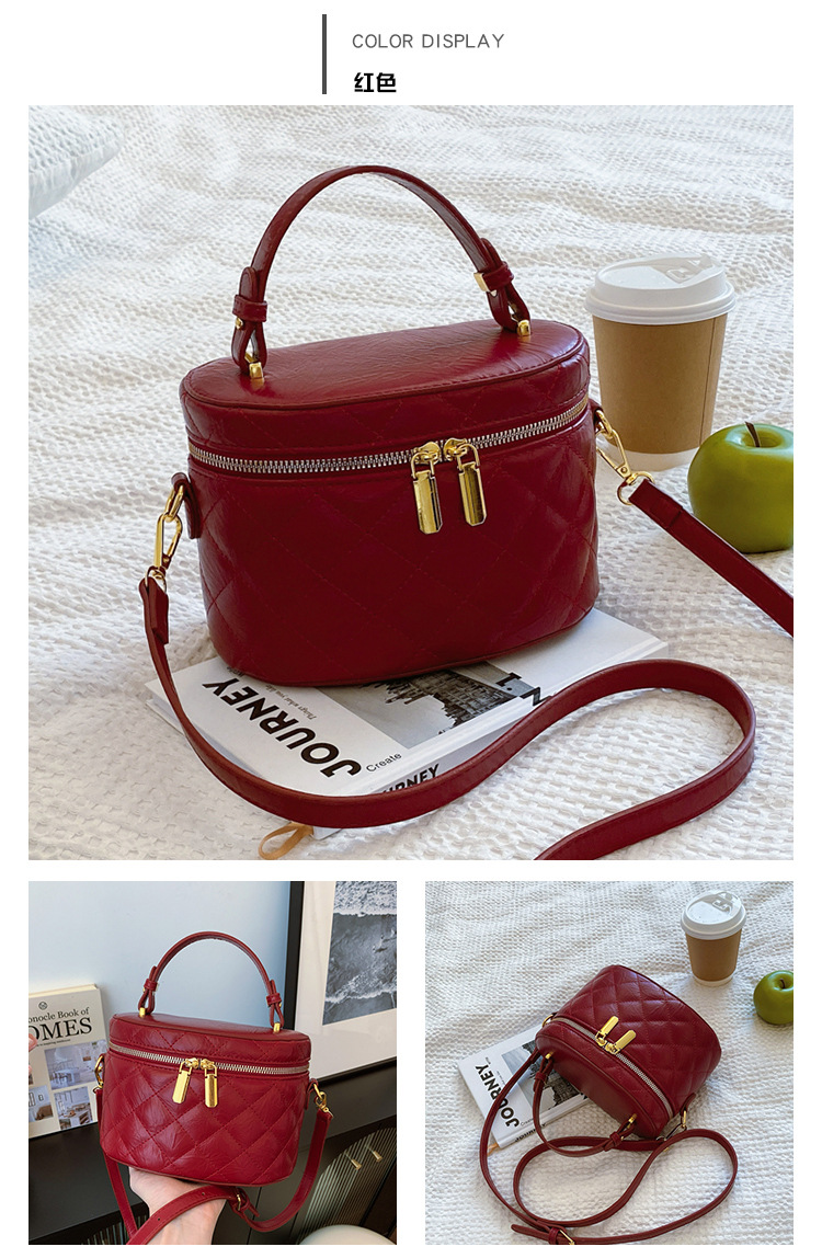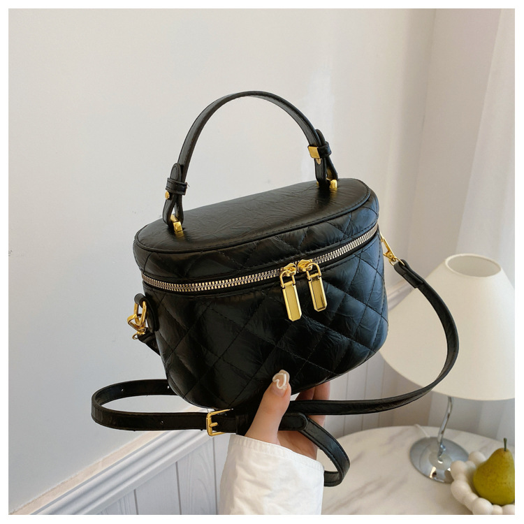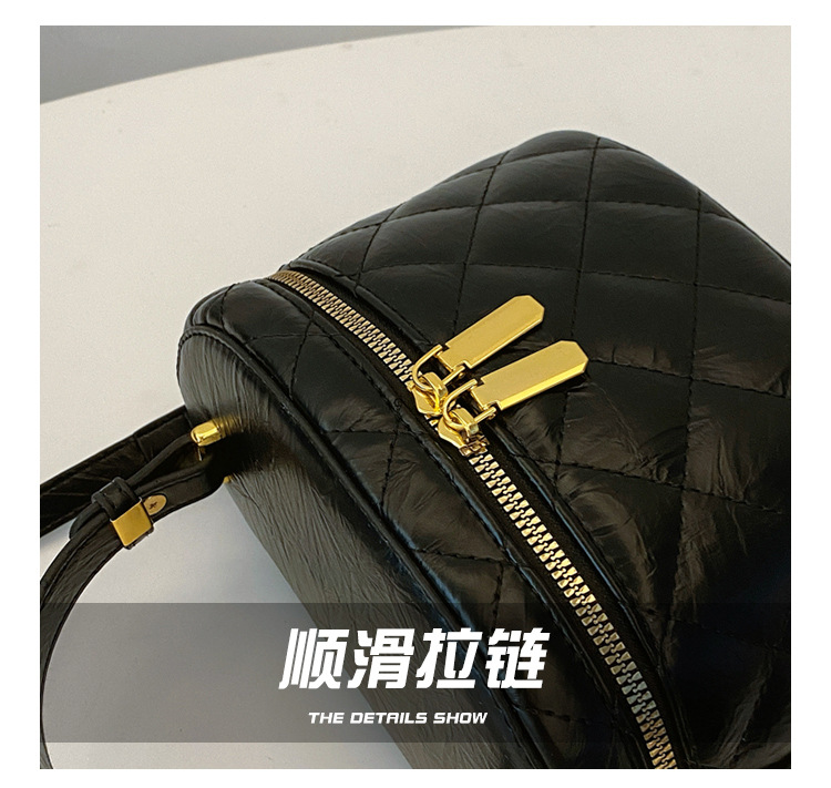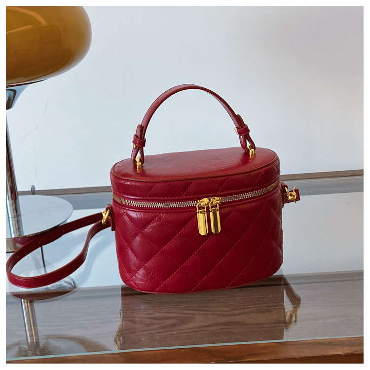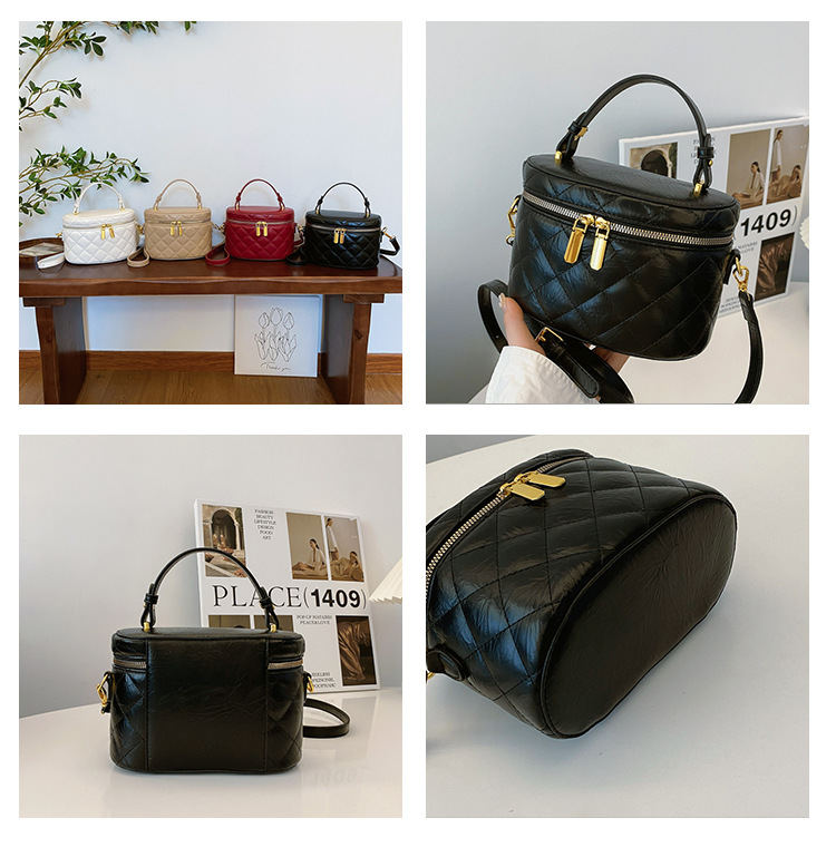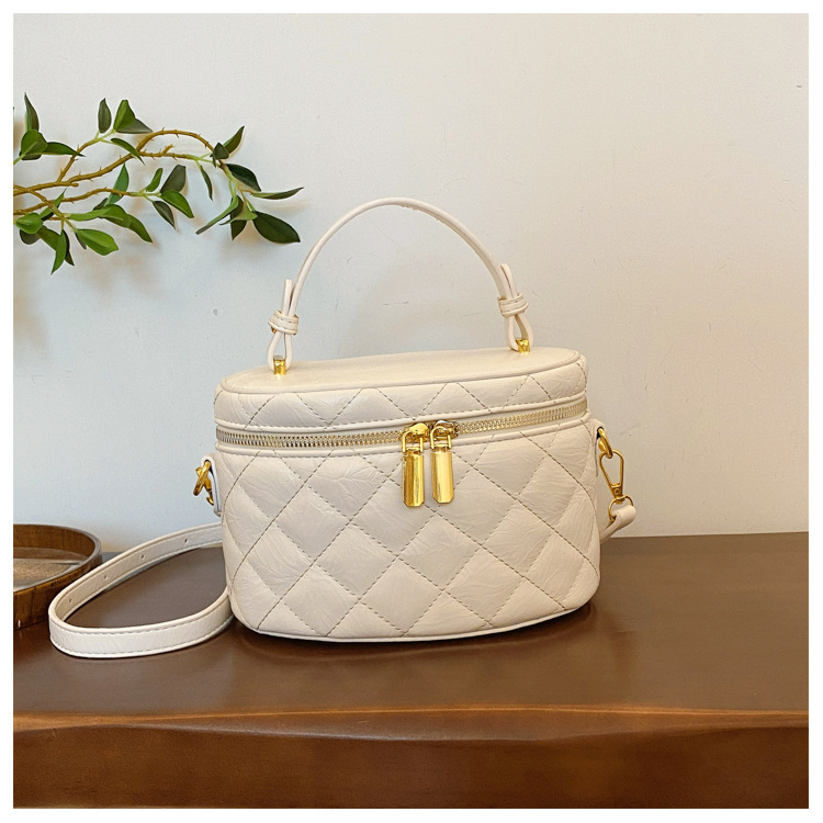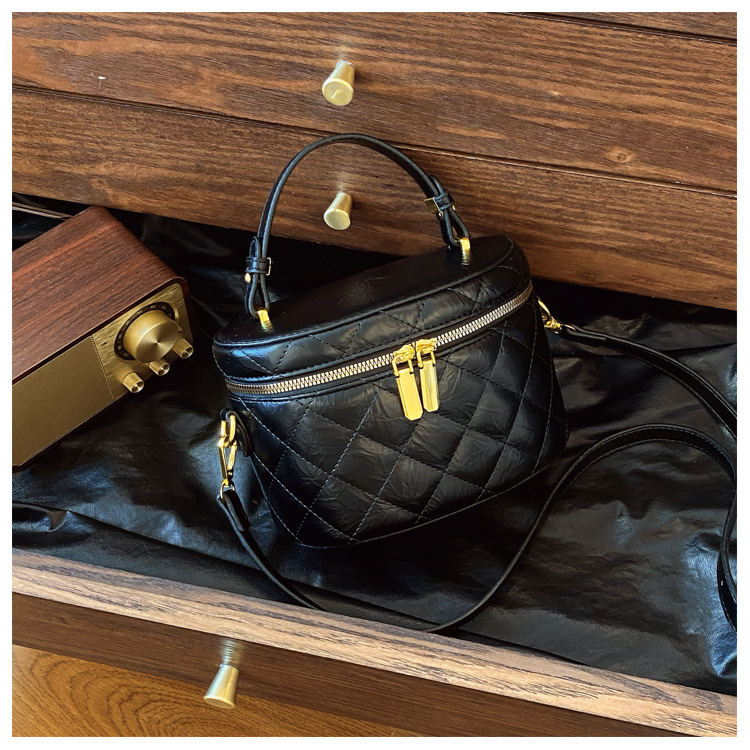 网红流行简约手提包女包2025新款菱格纹质感盒子水桶包小巧斜挎包