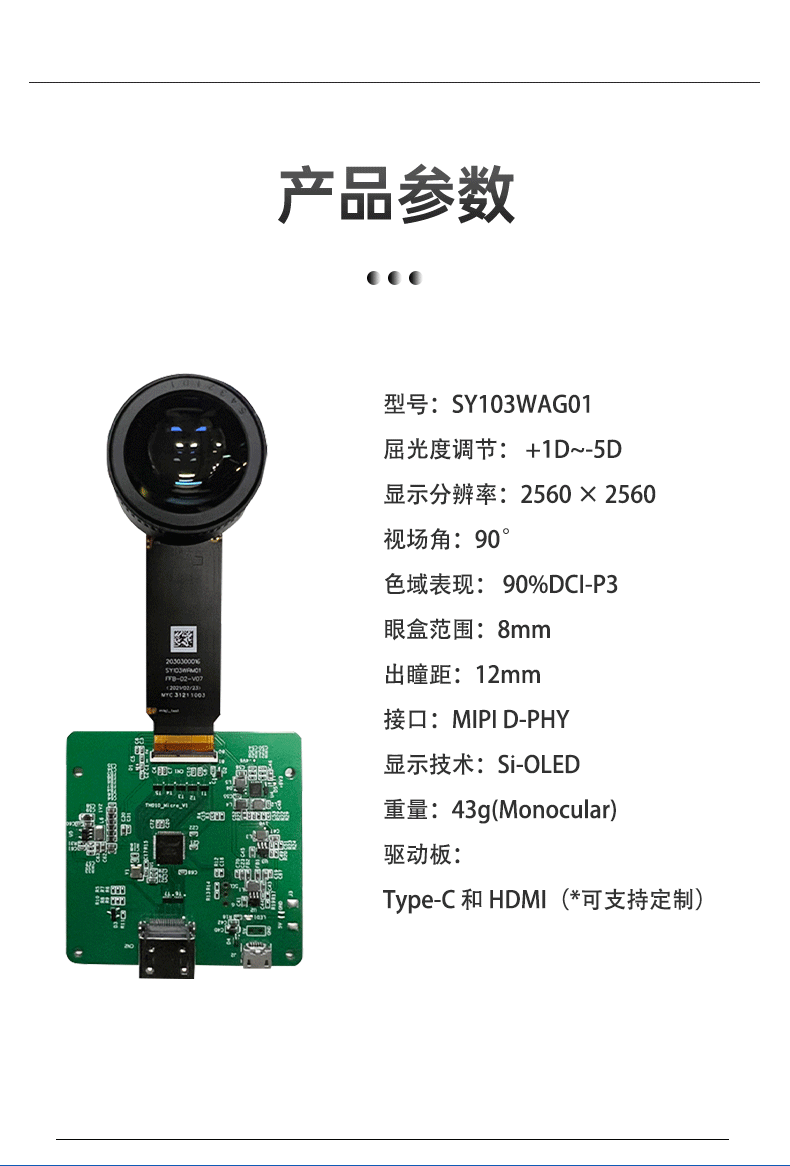视涯品牌1.03寸显示屏取景器2560*光机HDMImini单目方案oled屏
