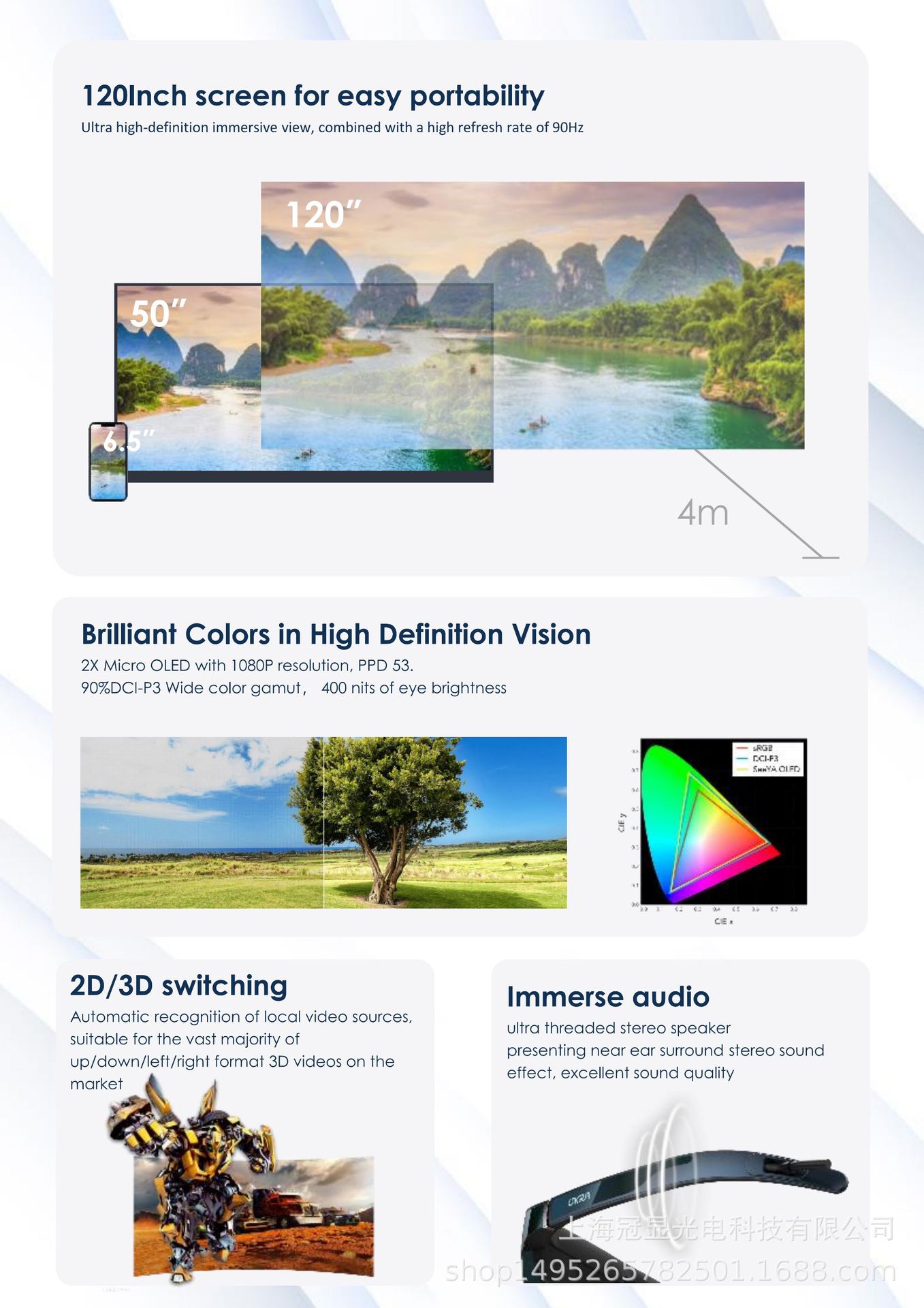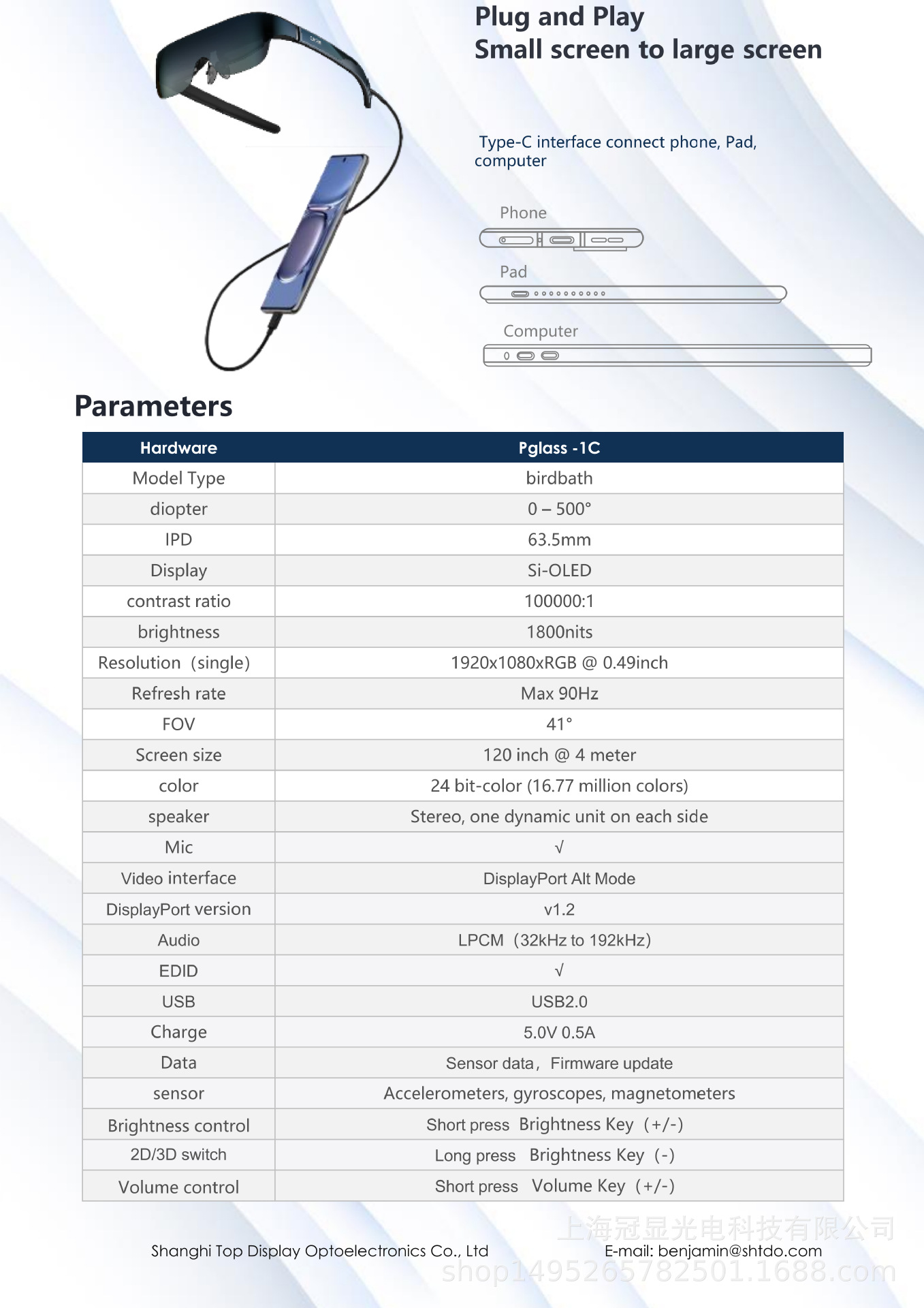 人气视涯品牌0.49寸Pglass1C近眼眼镜 1920*1080支持DP1.2+USB2.0
