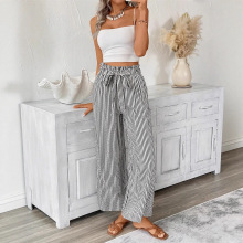 2025欧美跨境外贸女装独立站亚马逊temu条纹休闲长裤直筒裤