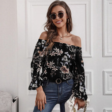 定制2025夏季欧美跨境女士新款花卉印花圆领网眼长袖T恤厂家批发
