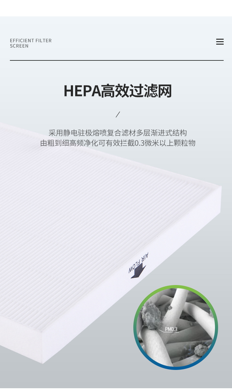- 功能:除烟味/异味、吸附PM2.5/花粉