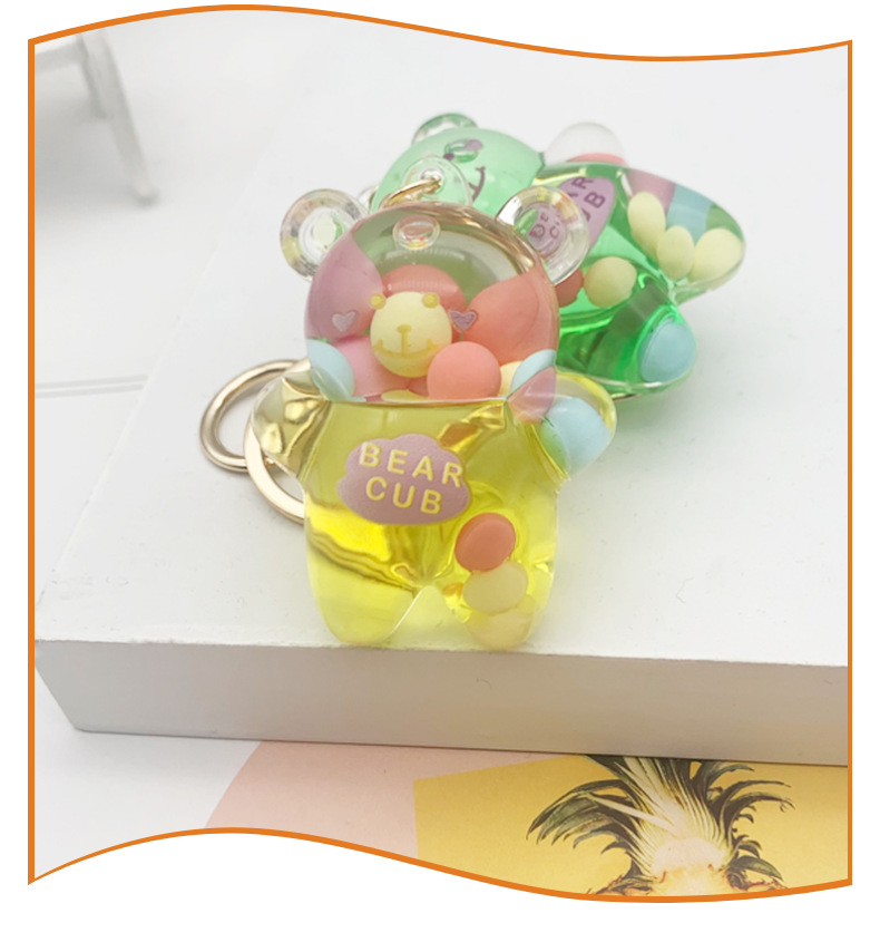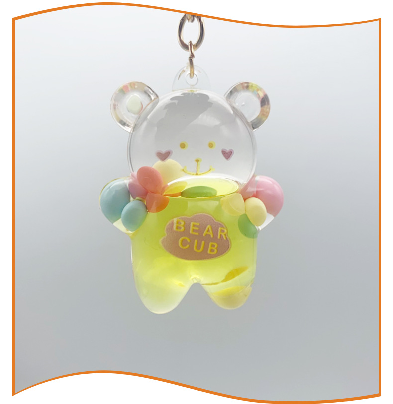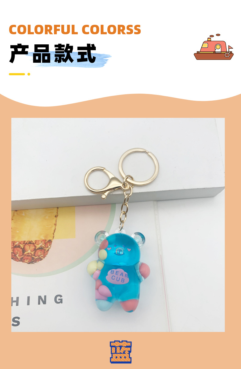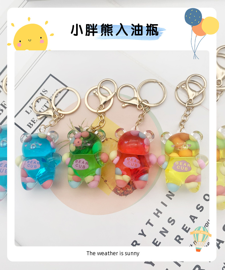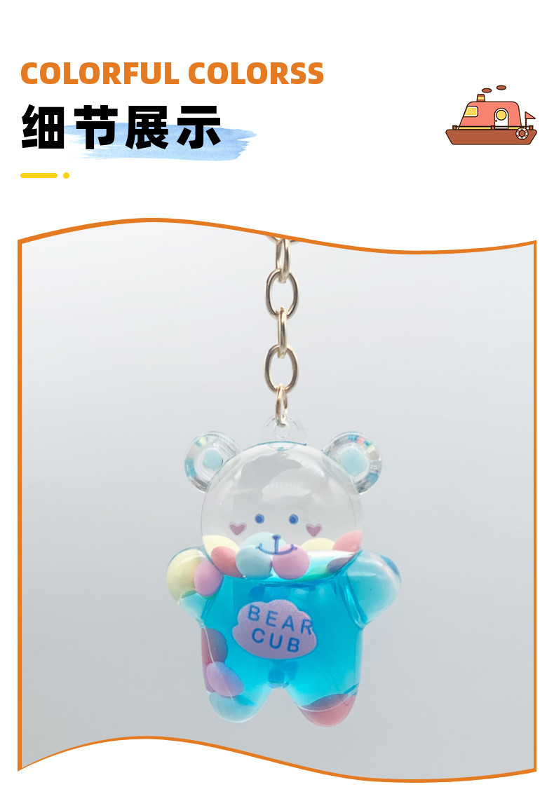 卡通可爱入油小胖熊钥匙扣流沙瓶亚克力漂流瓶亮片包包挂件摆摊小