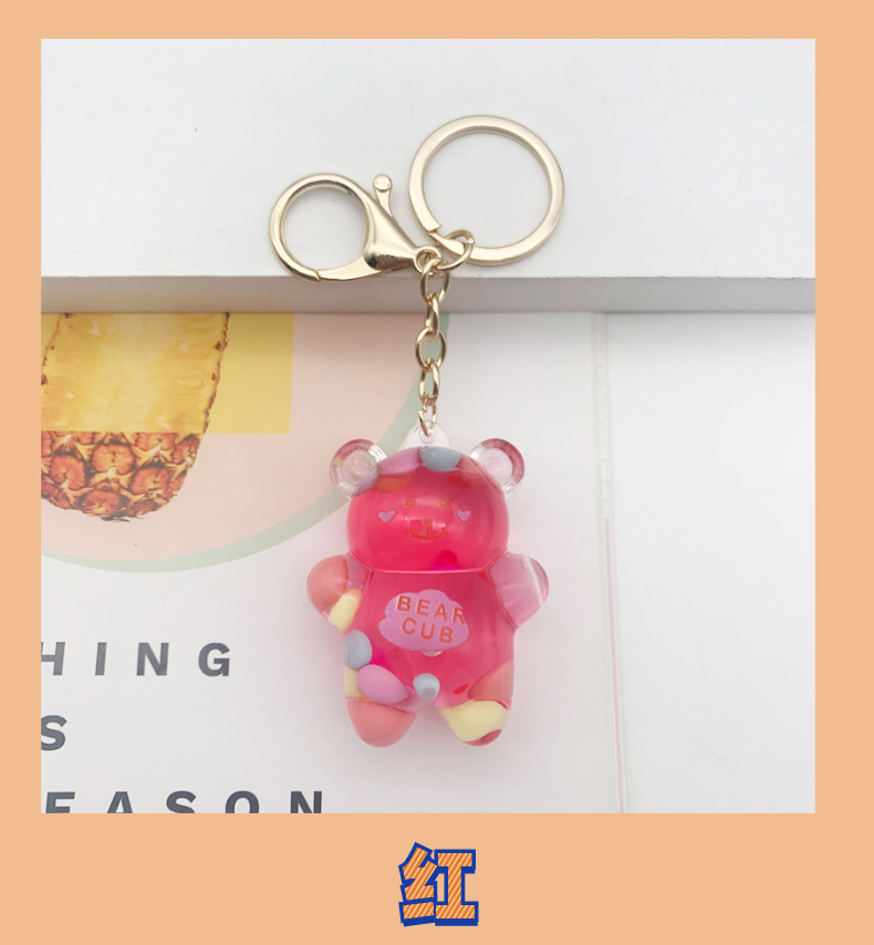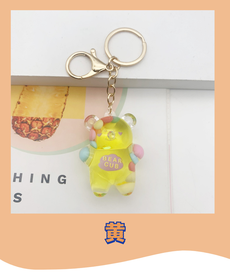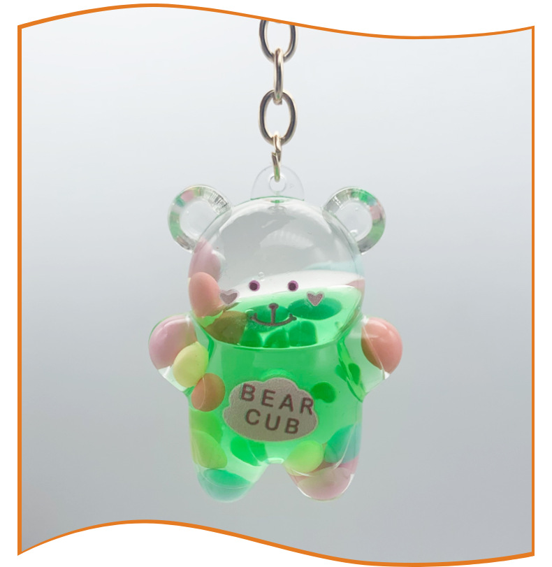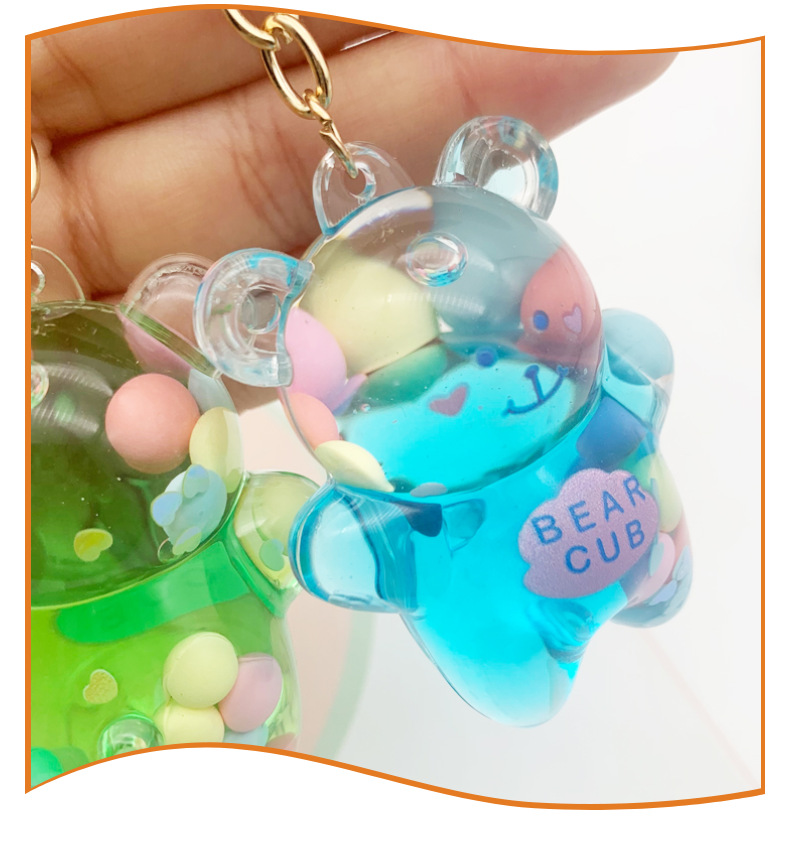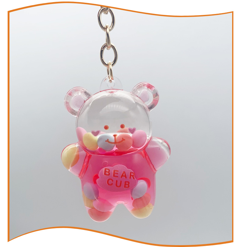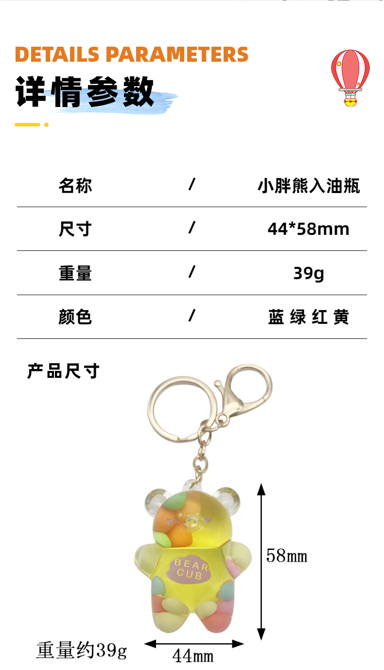 卡通可爱入油小胖熊钥匙扣流沙瓶亚克力漂流瓶亮片包包挂件摆摊小