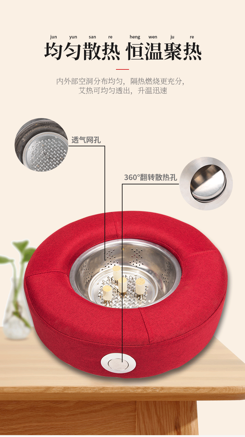 艾灸蒲团艾柱坐灸艾灸仪家用便携式恒温控温实木龙骨蒲团坐垫批发