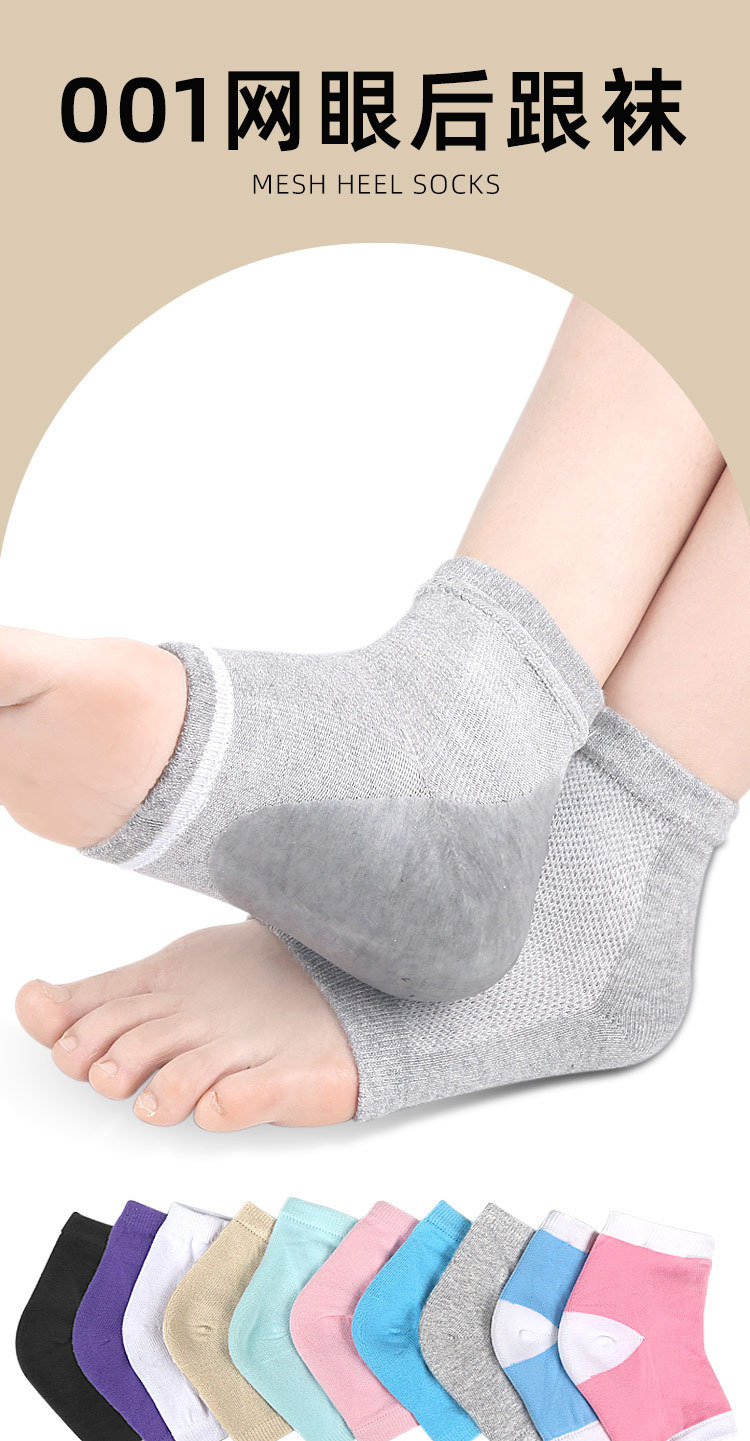 成人儿童足跟凝胶防裂袜网眼透气棉袜套脚后跟保护套跨境