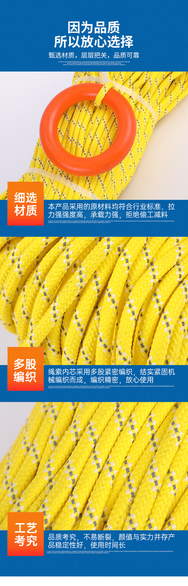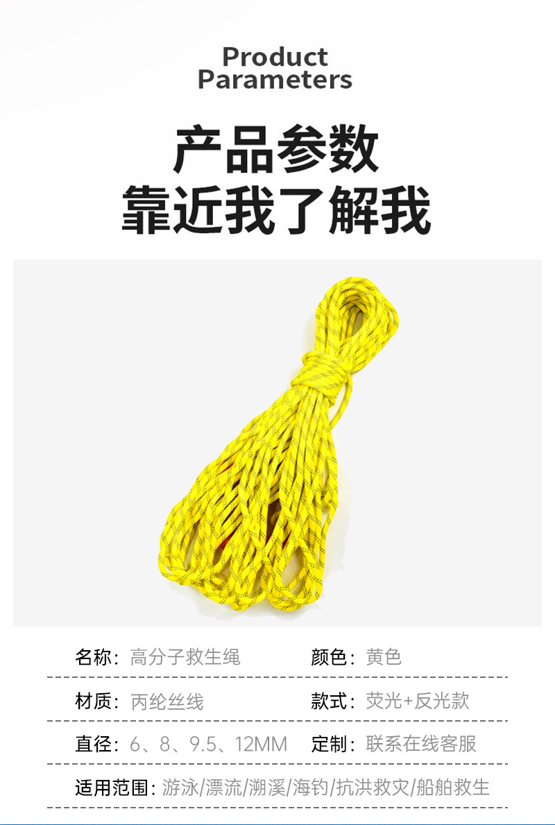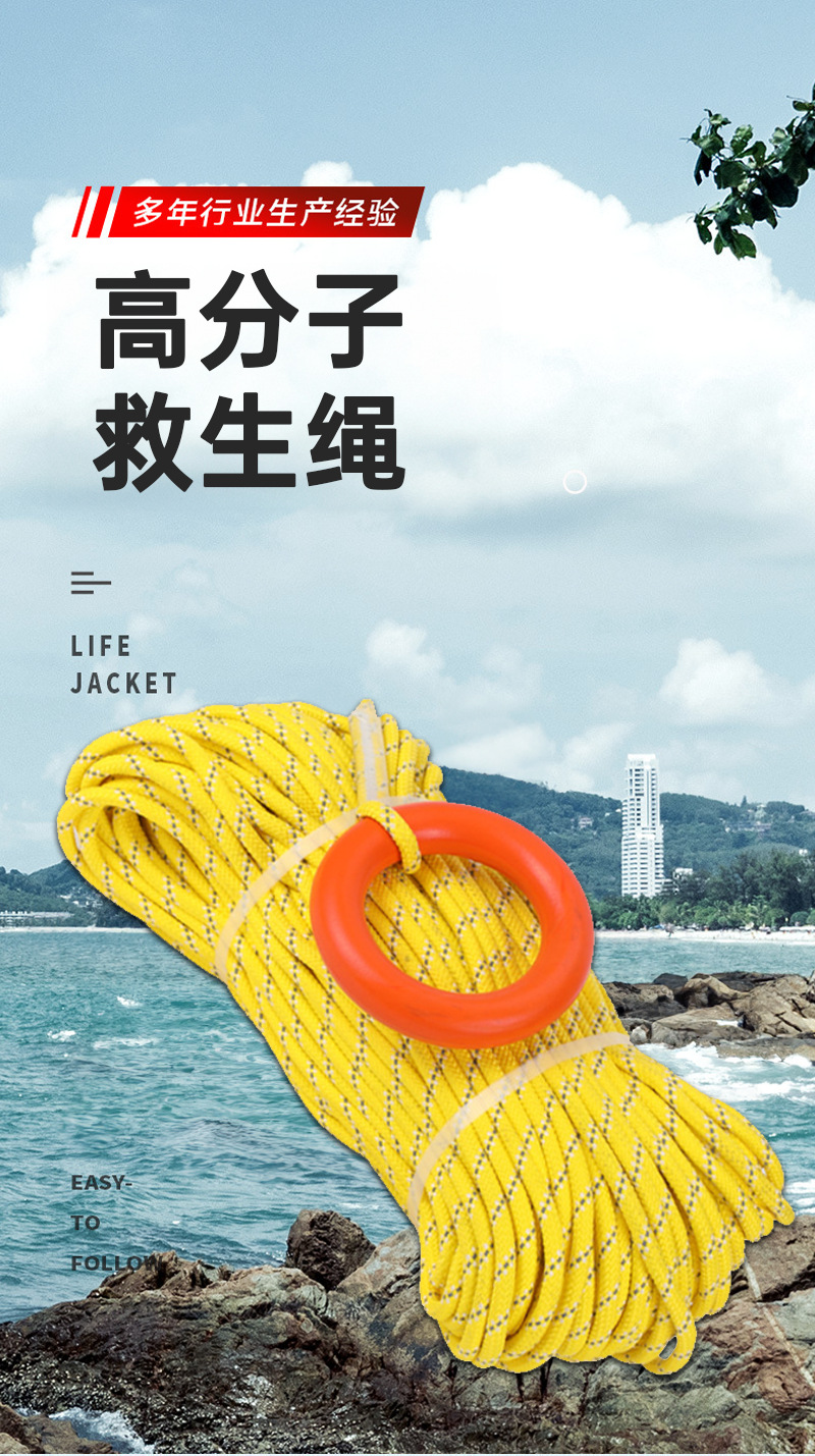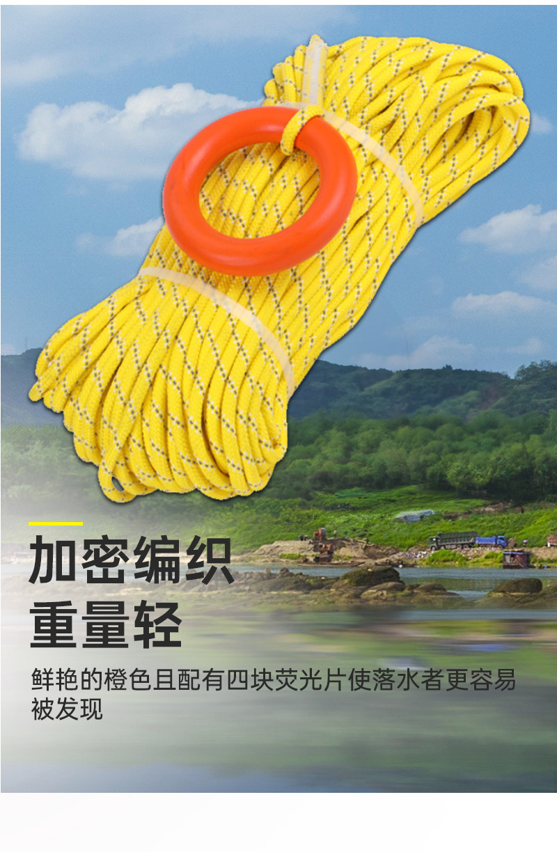 高分子水上救生绳水面漂浮反光救援绳荧光救生圈安全绳索厂家批发