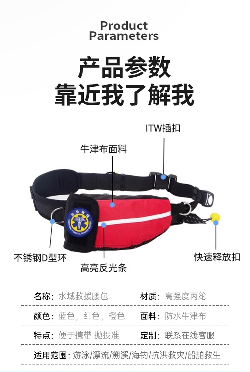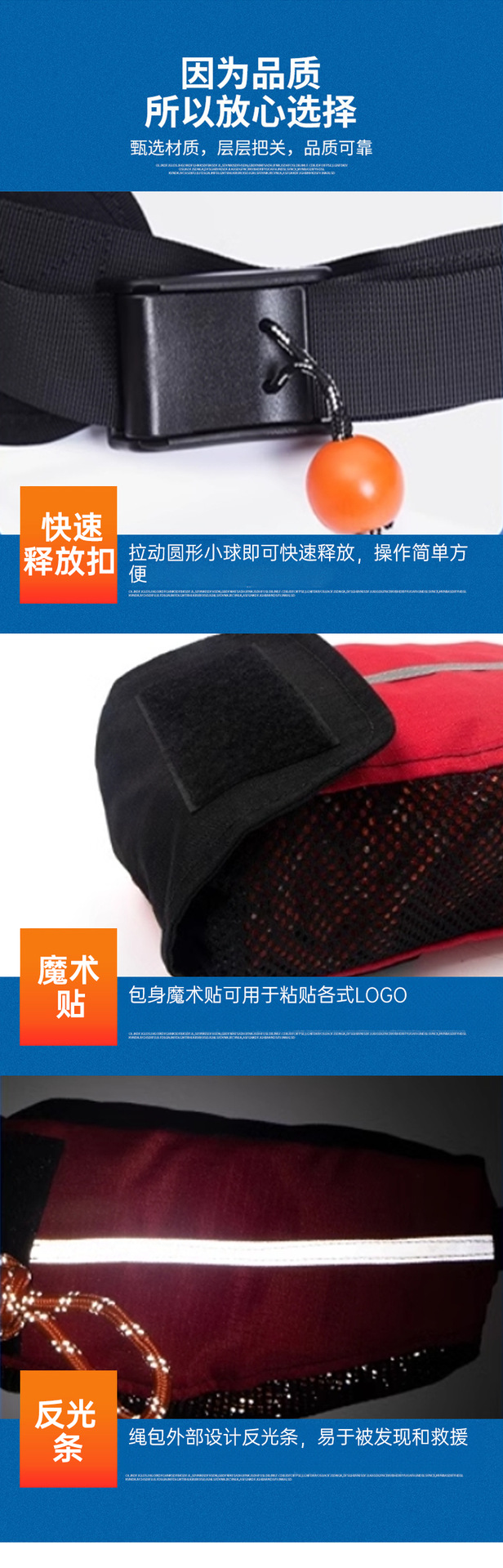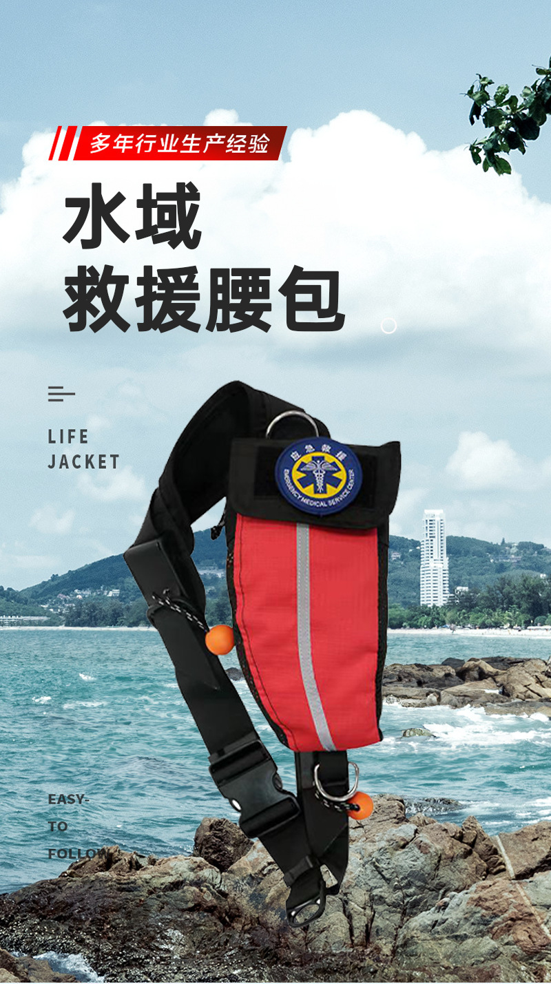 腰挂式救援抛绳包水域救援抛绳腰包防汛救援抛绳袋漂流反光救生绳