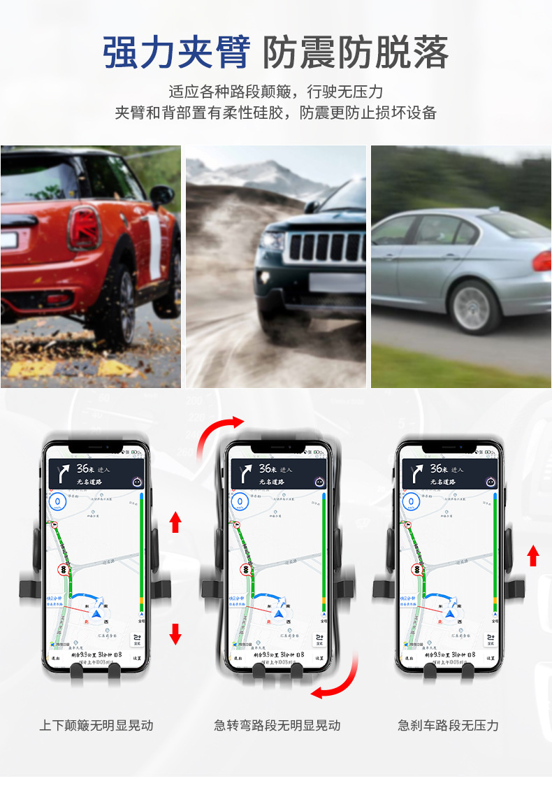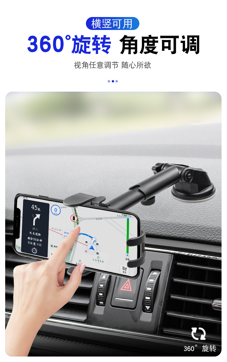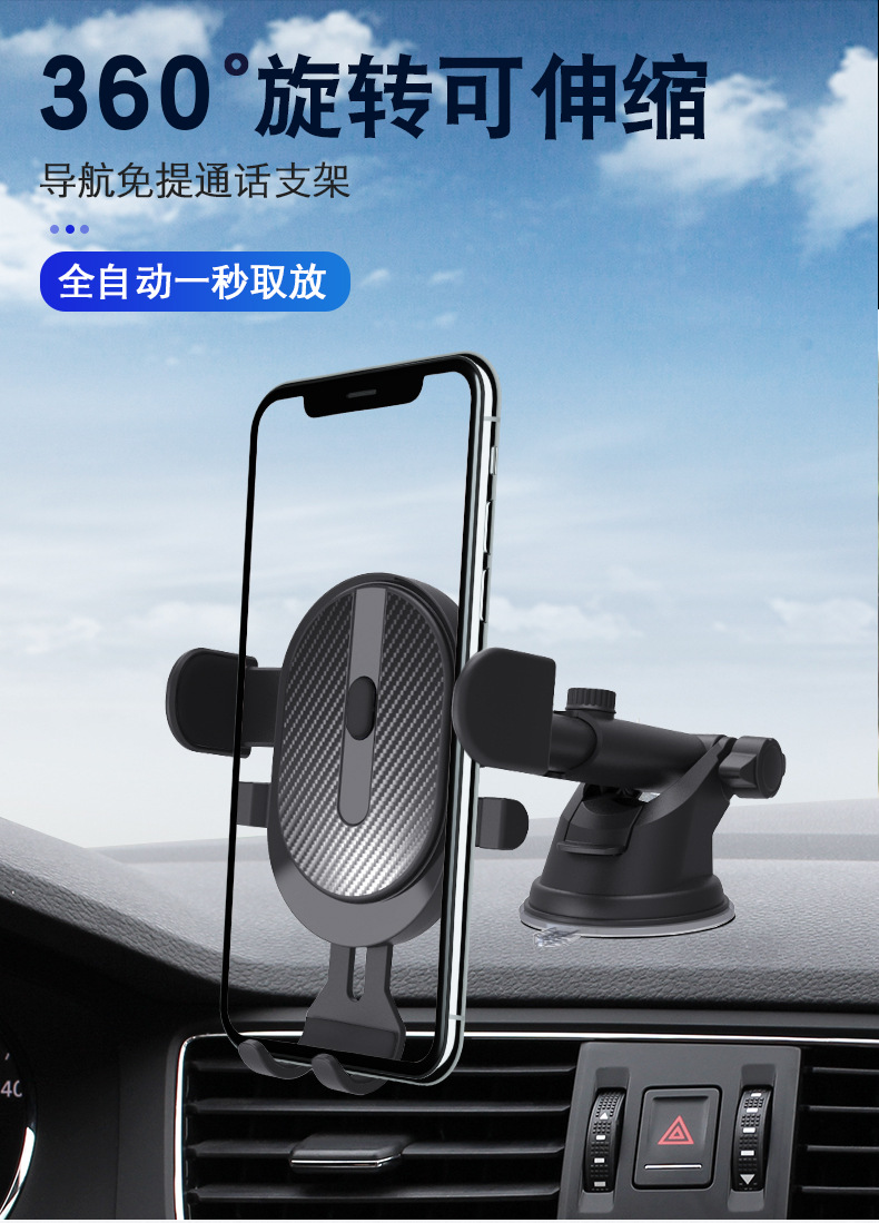 新款车载手机支架自动锁紧伸缩吸盘硅胶底汽车出风口手机导航支架